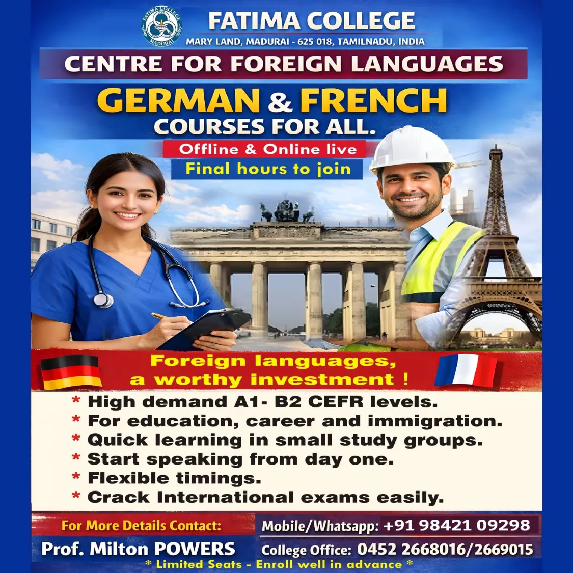 - Admissions Open for German & French Courses for Students and Public