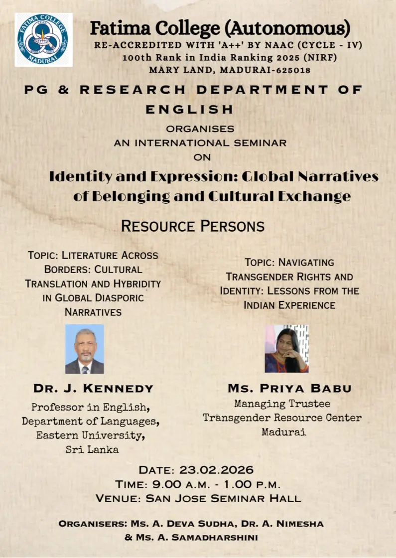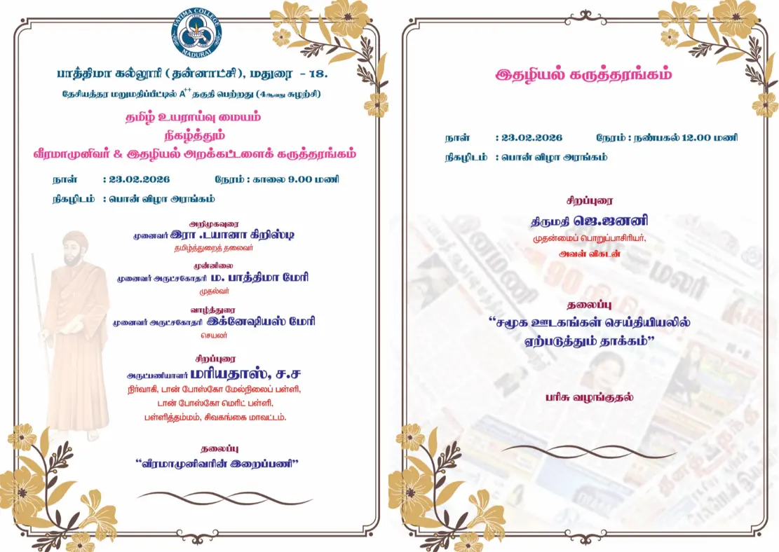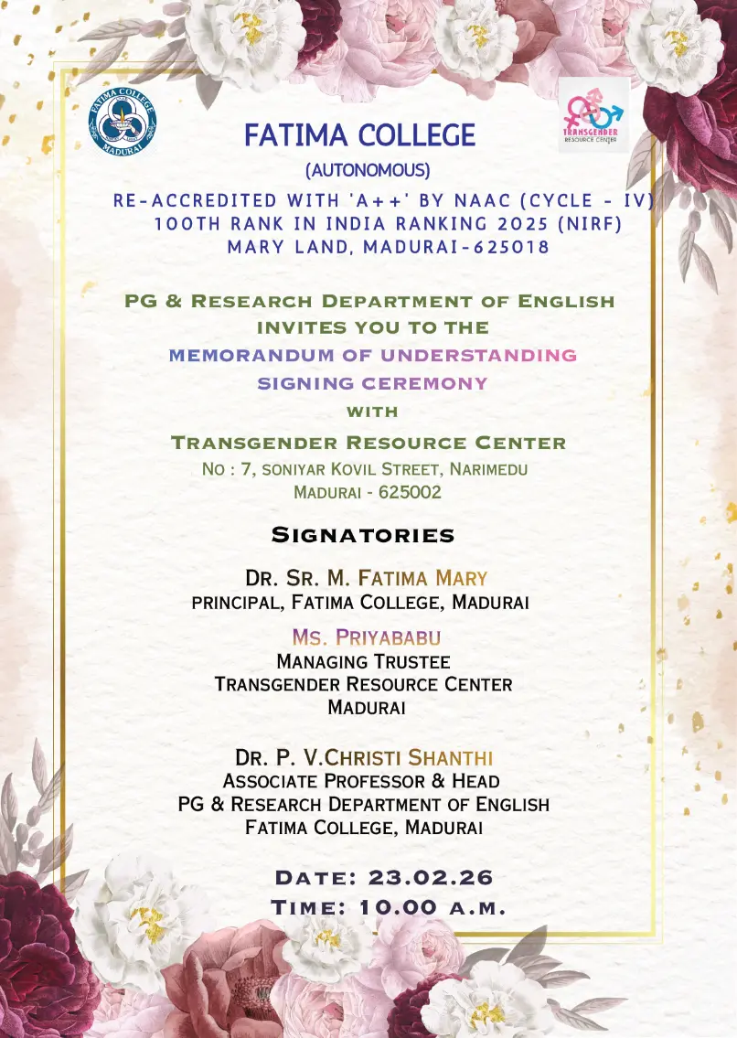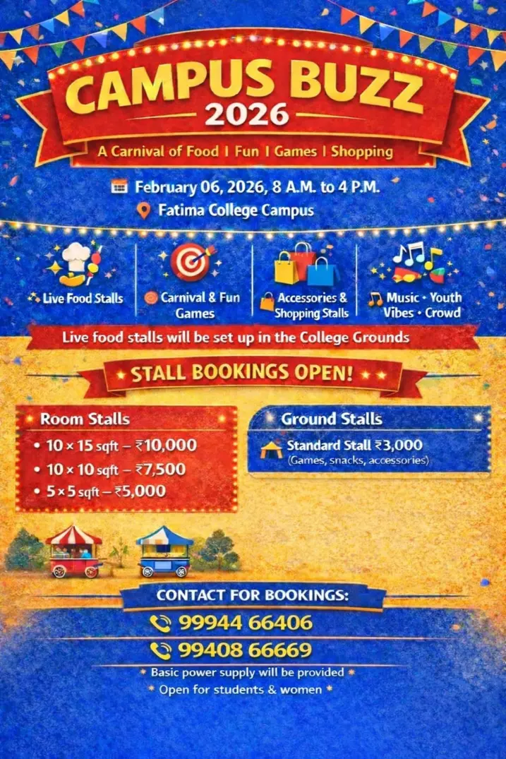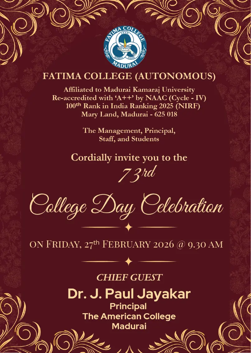 - Fatima College proudly announces the sanctioning of two TIDCO (Tamil Nadu Industrial Development Corporation) Projects – an Institute–Industry initiative under the University Research Park - on Dec. 06, 2025.