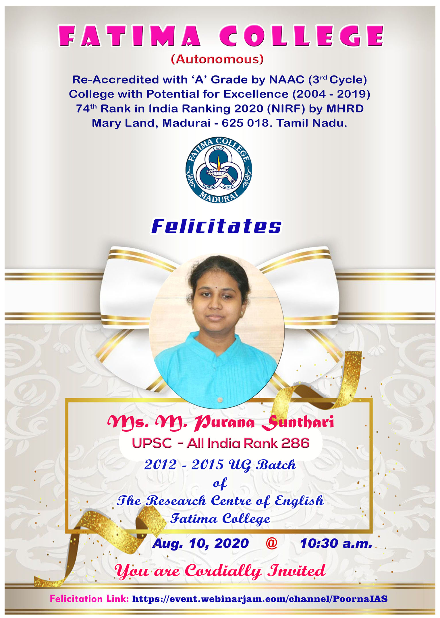 Ph.D. Viva: Invitation & Synopsis of Ms. J. Sahaya Bowlin, The Research Centre of Tamil on 26. 04. 2021. |