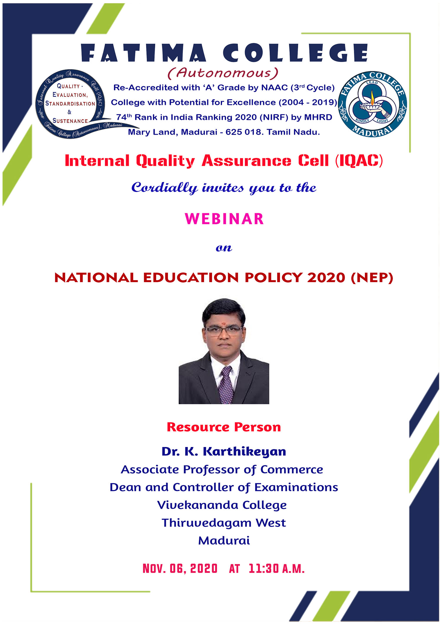 Invitation: Virtual celebration of 68th College Day on Apr. 08, 2021. |