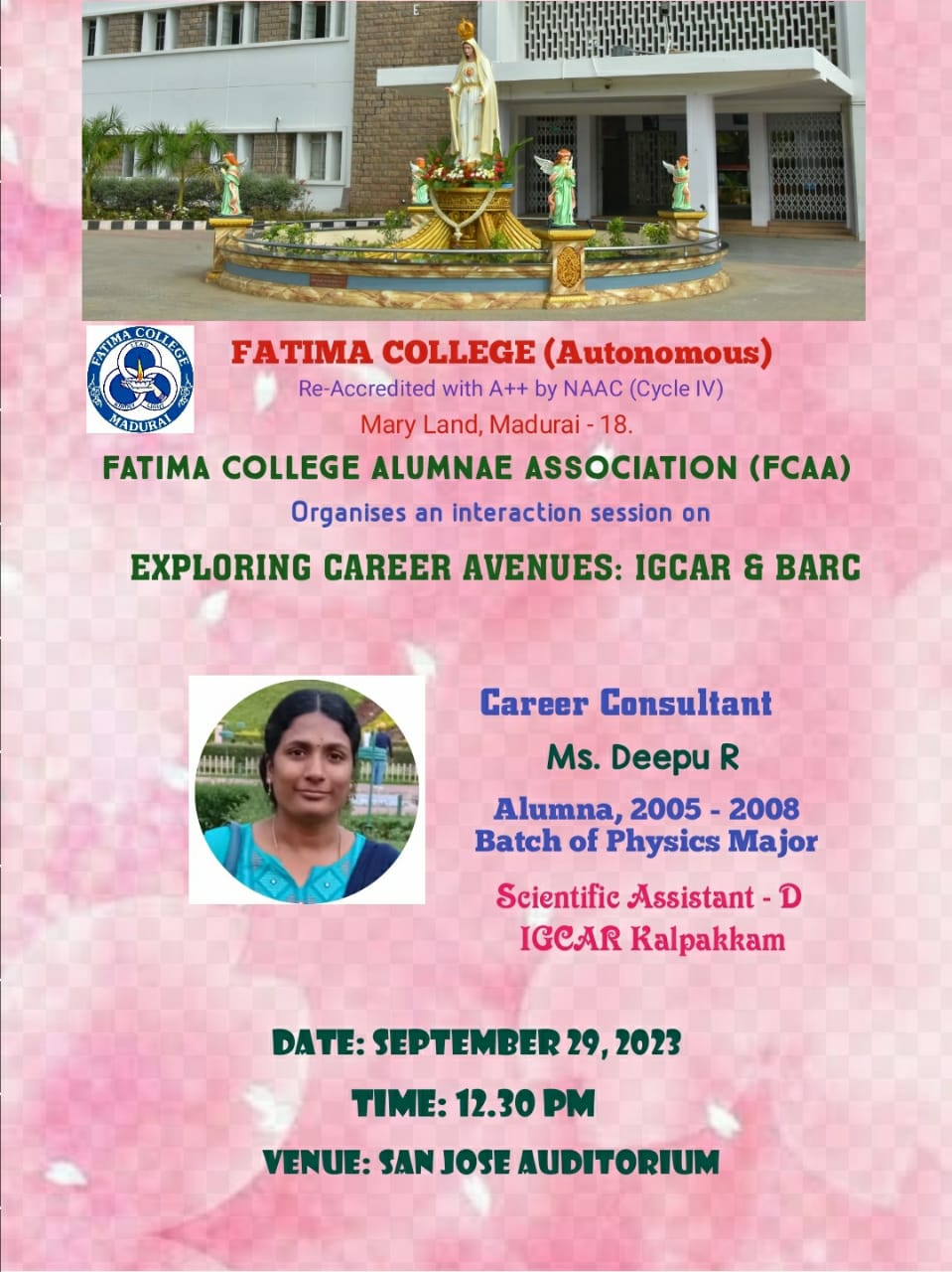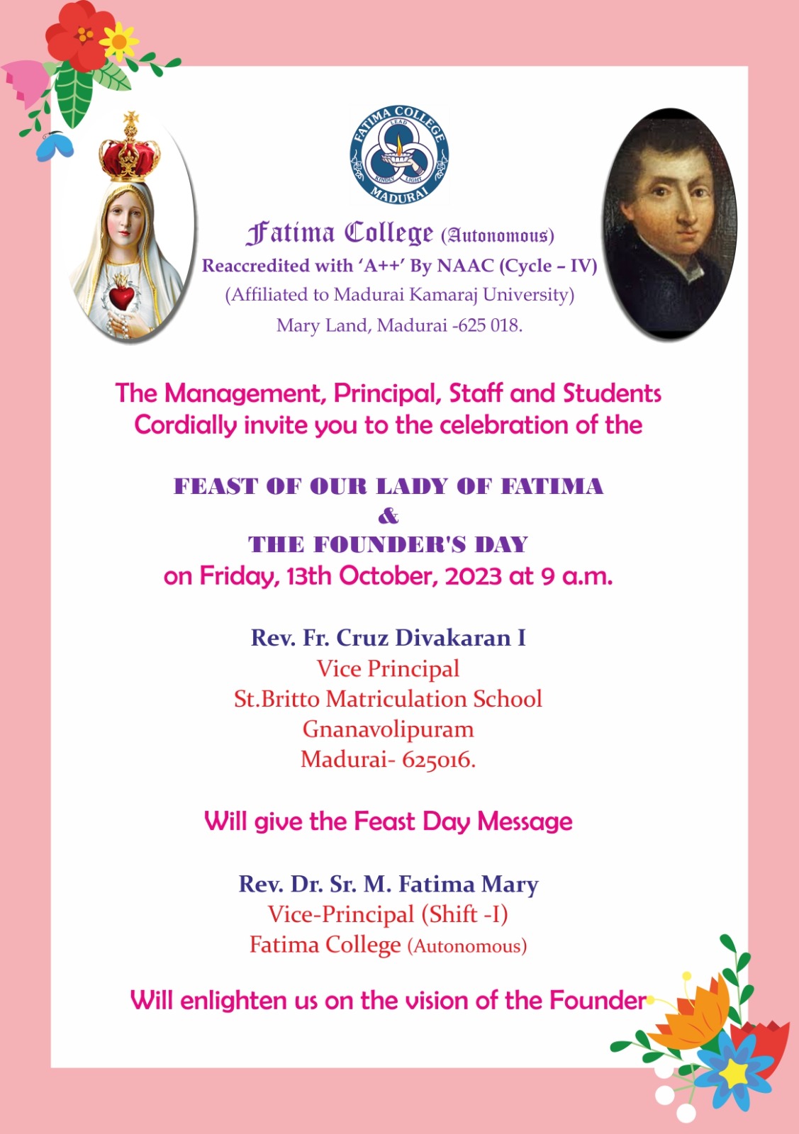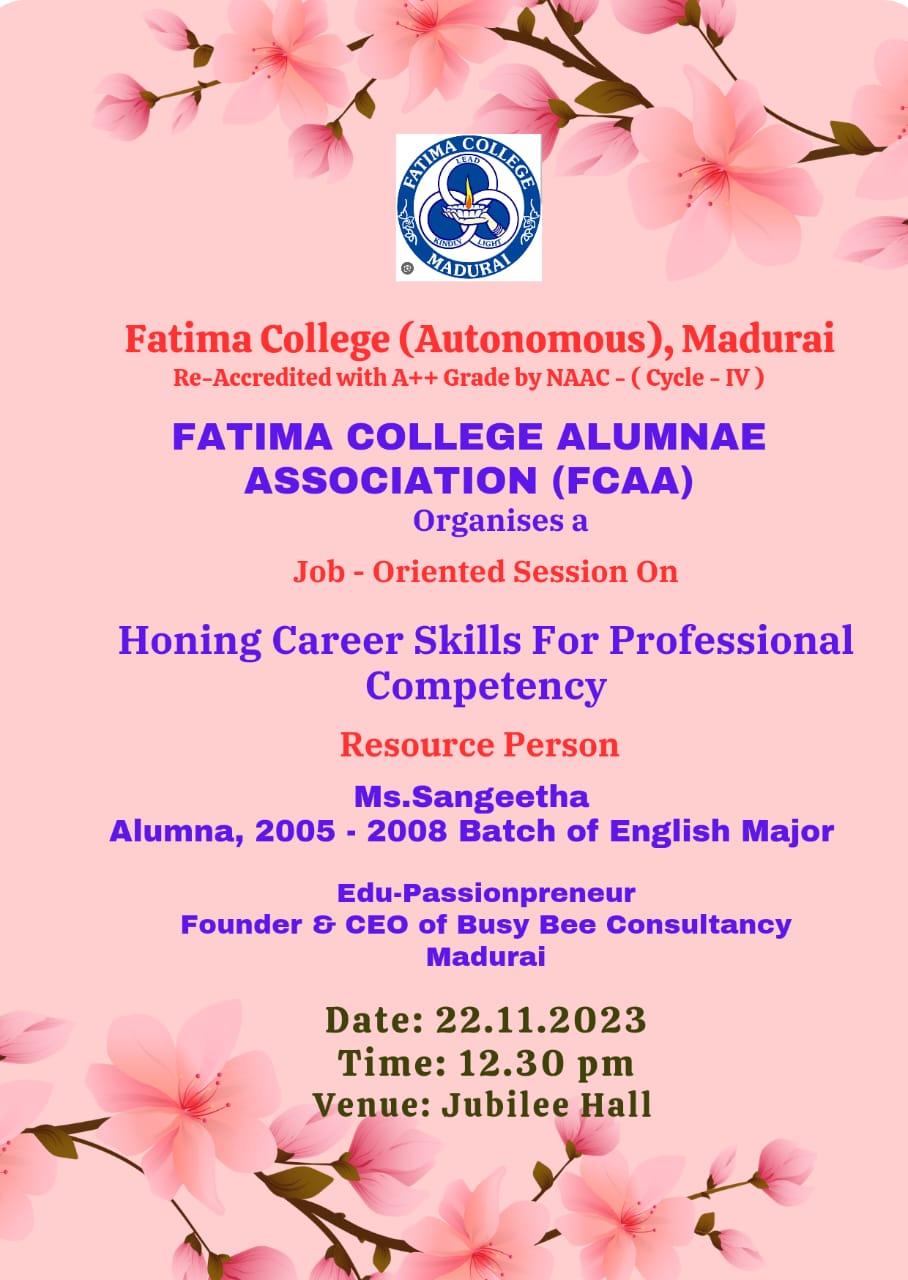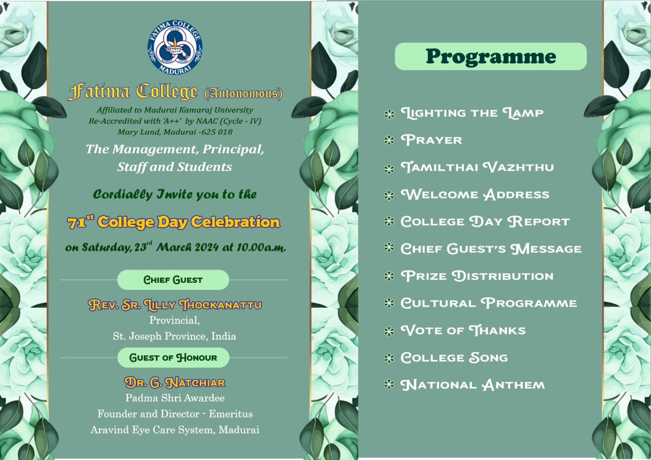 | Invitation: Fatima College Alumnae Association (FCAA) organized an “Annual Alumnae Meet 2023” on June 24, 2023. Click here to Register… |