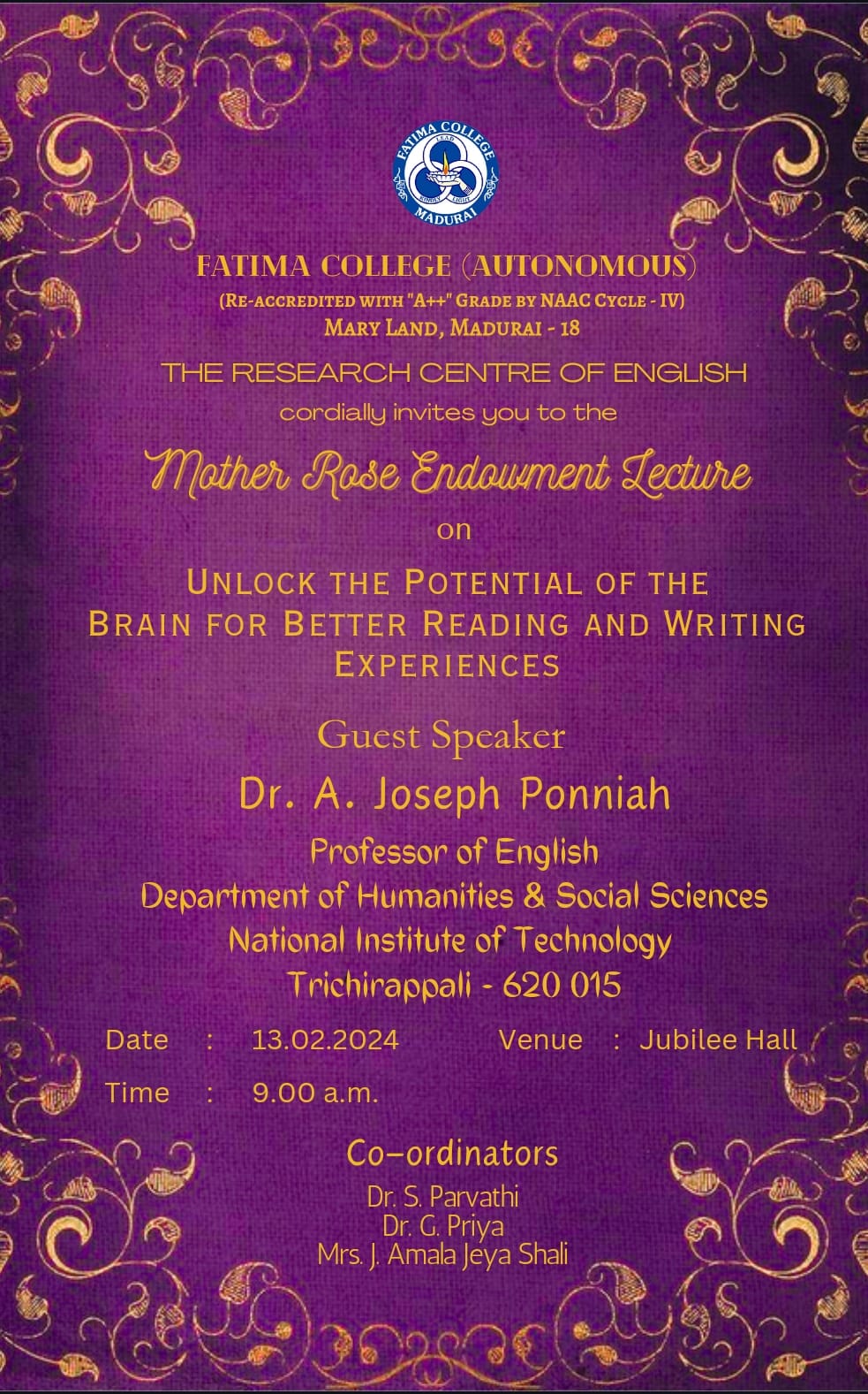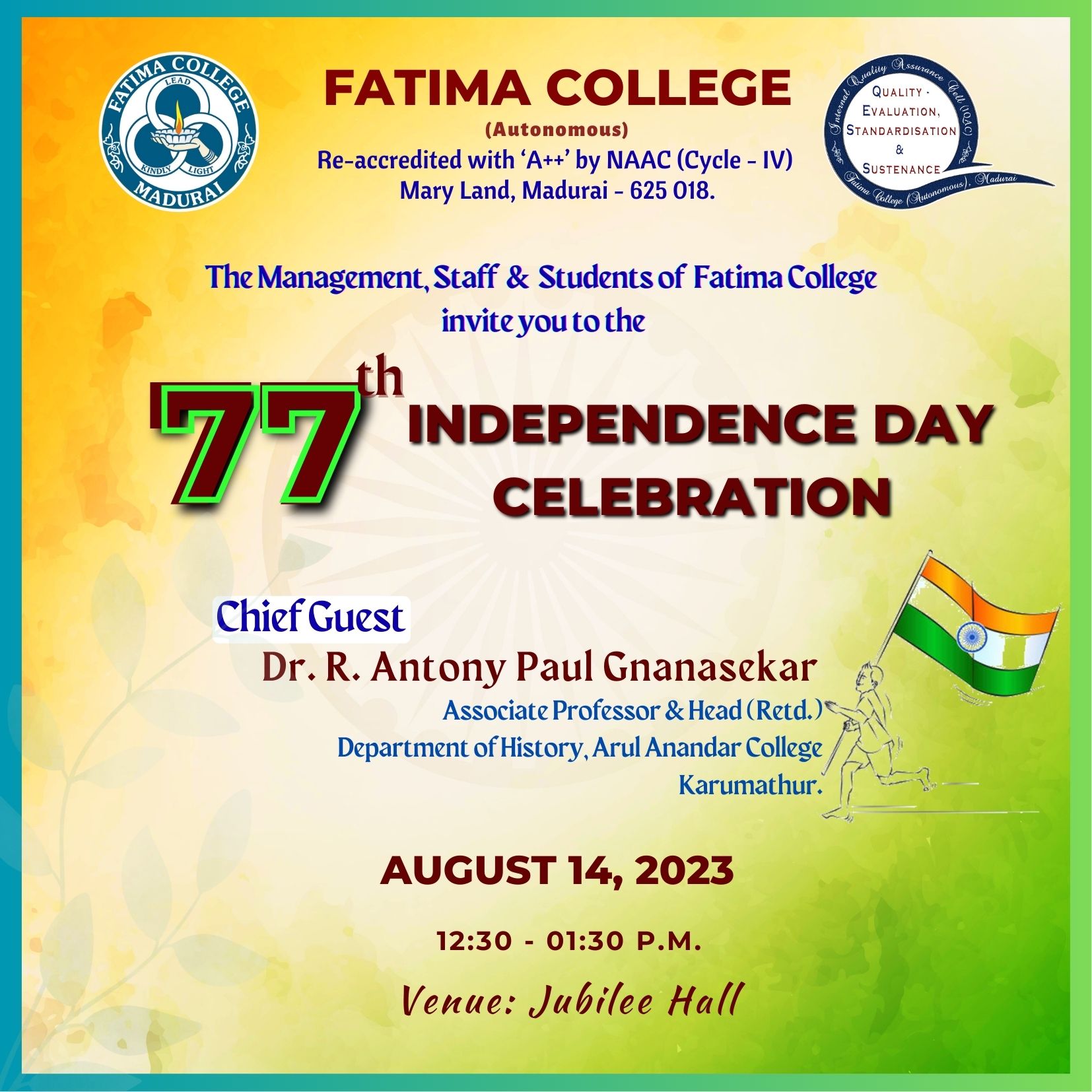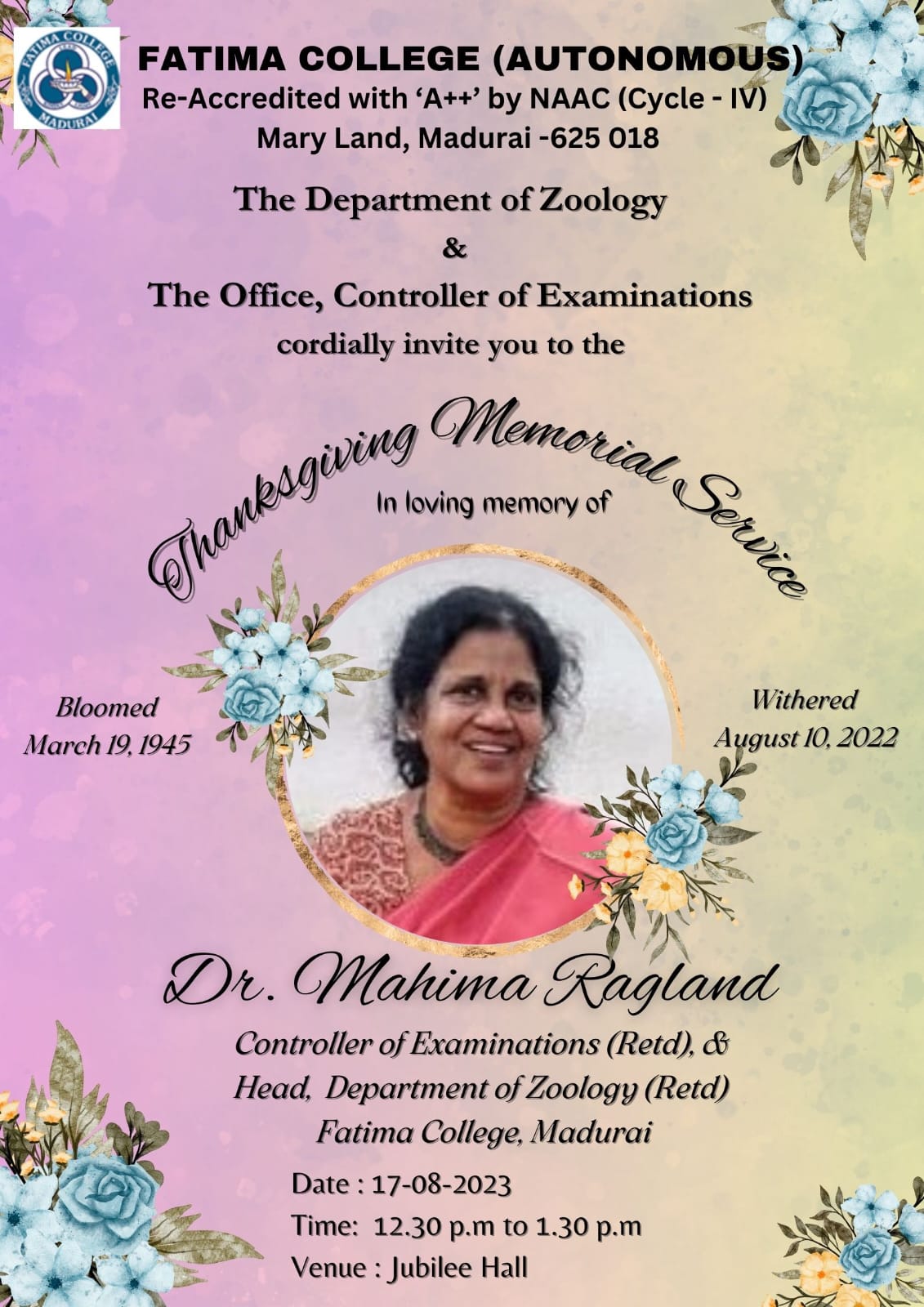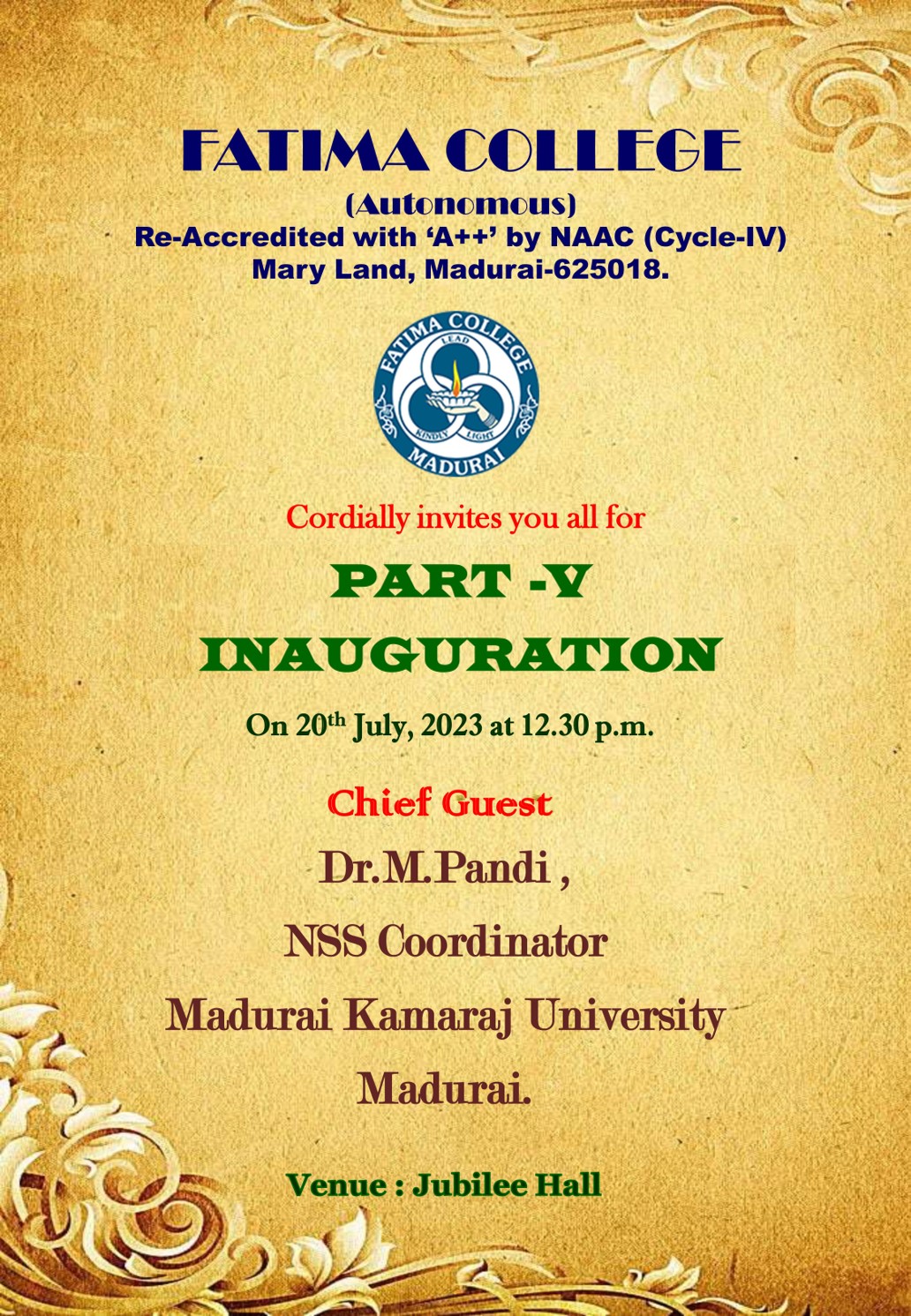 | Invitation: The College celebrated “Platinum Jubilee” on June 27, 2023. |