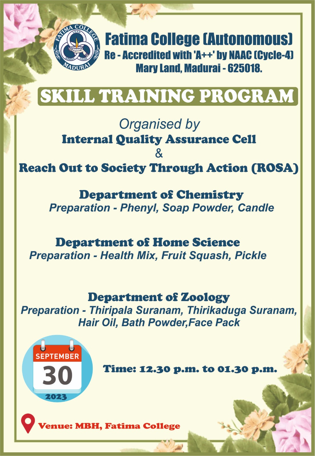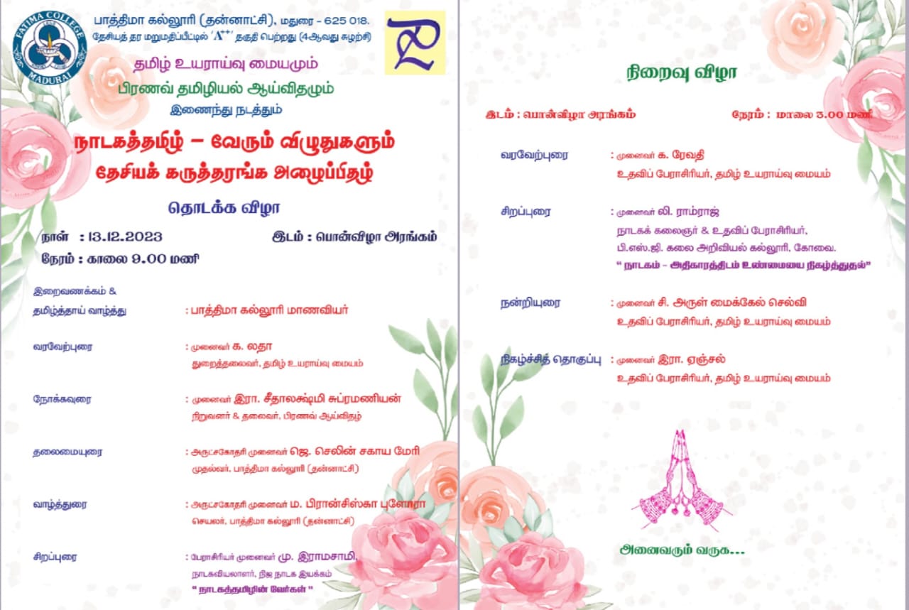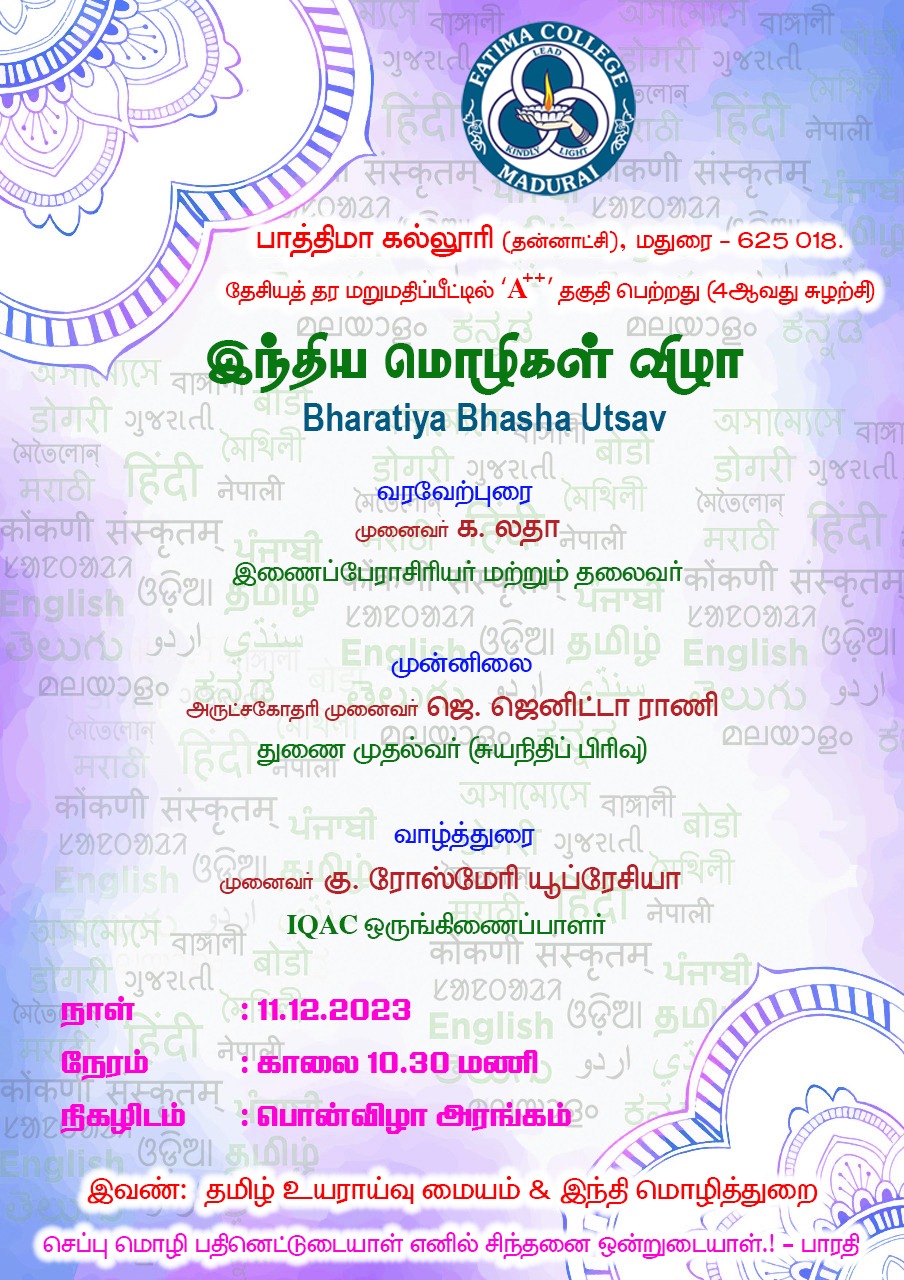 | College reopened for this Academic Year 2023 – 2024 on 19.06.2023 (Monday) including I UG & I PG. |