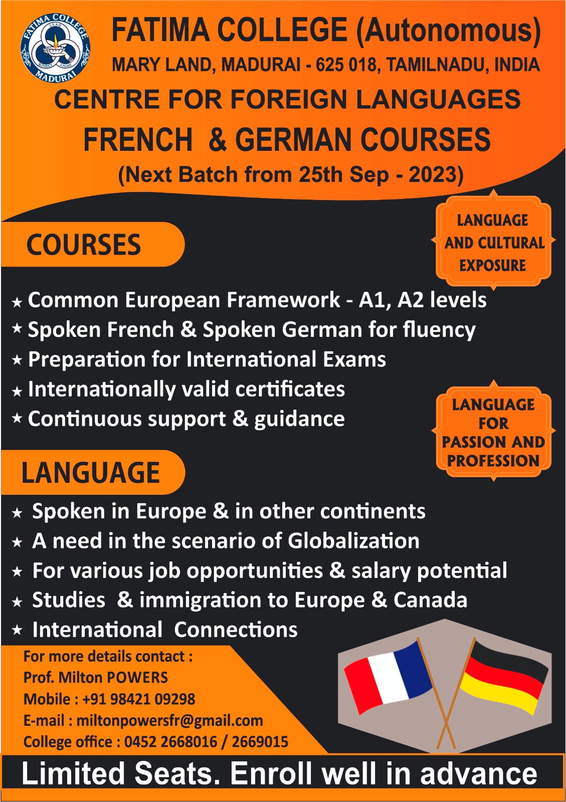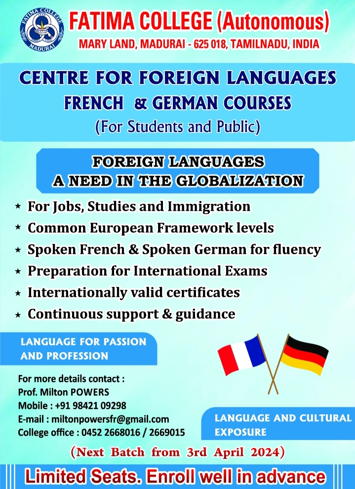 | Admissions Open for German & French Courses for Students and Public. |