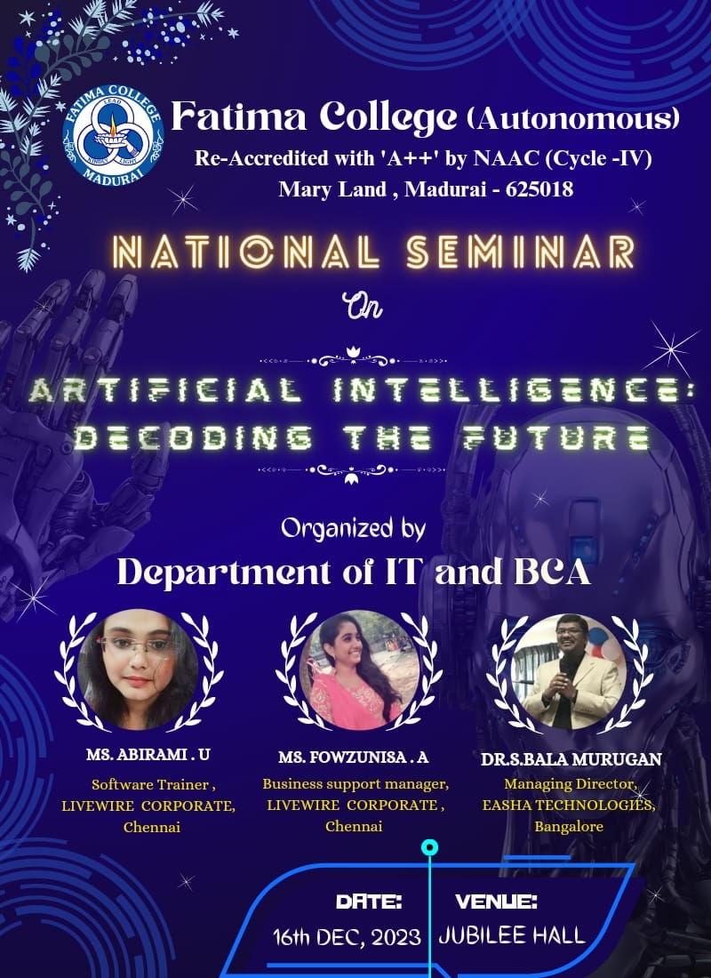 Fatima College offers M.Sc. Data Science – a new PG Programme from 2024 onwards. Click here to apply. |