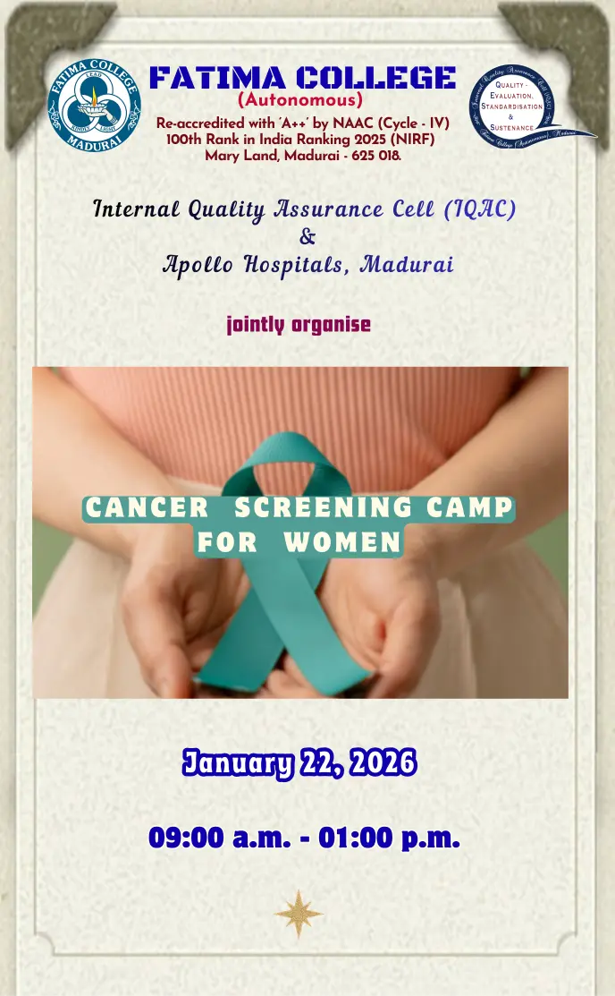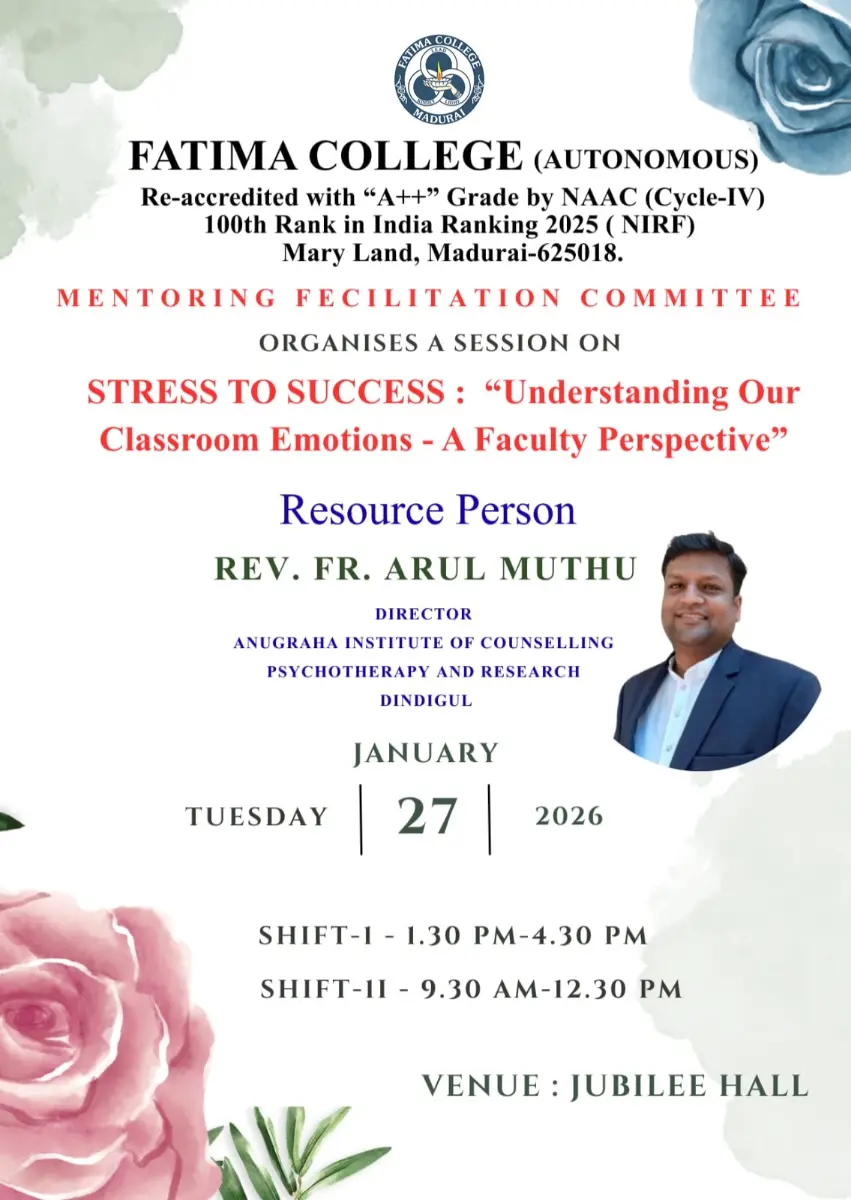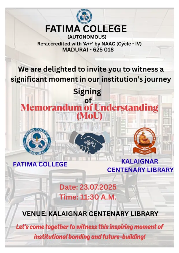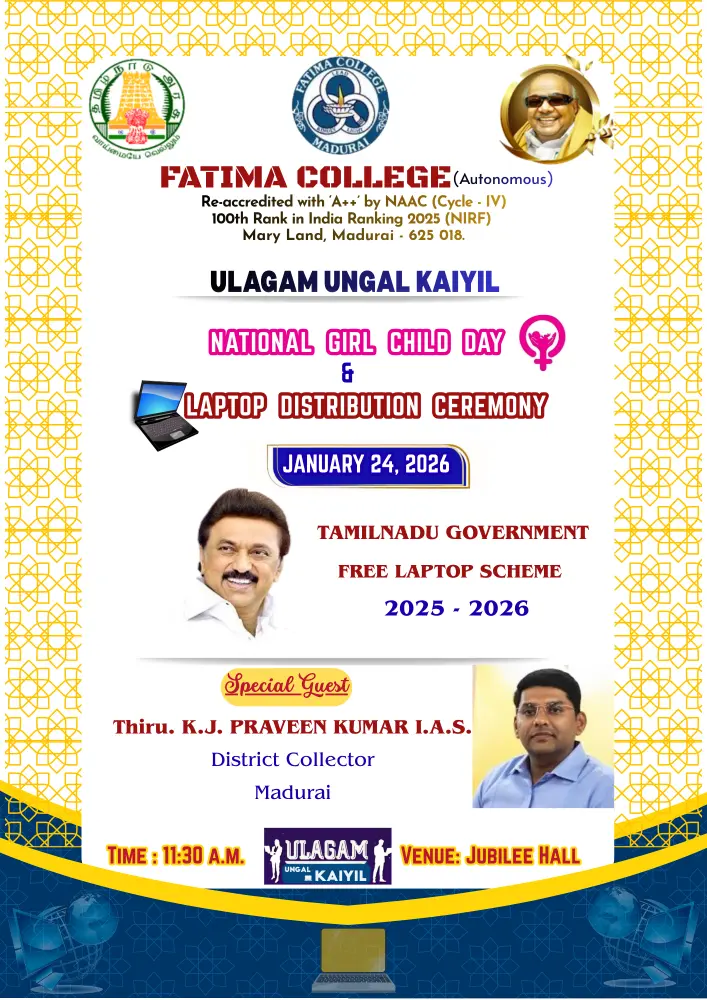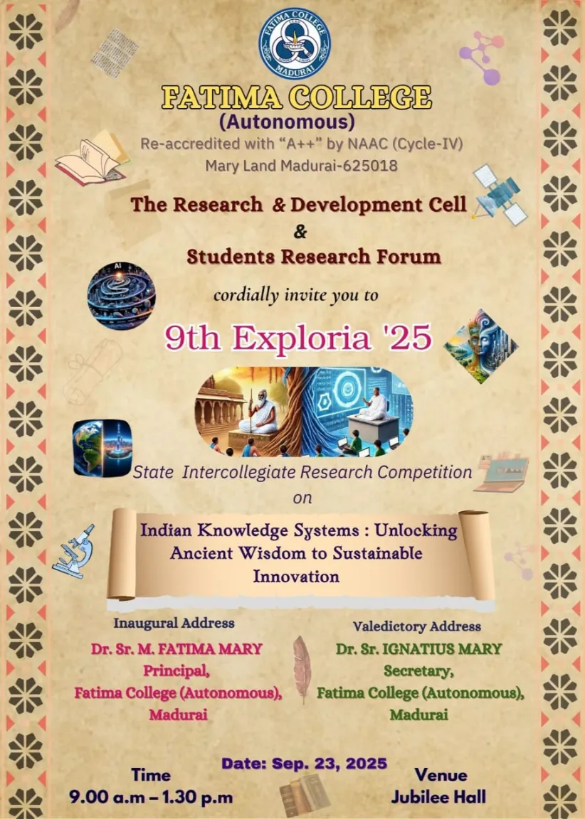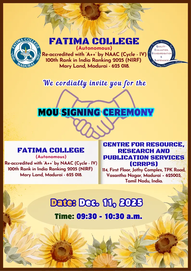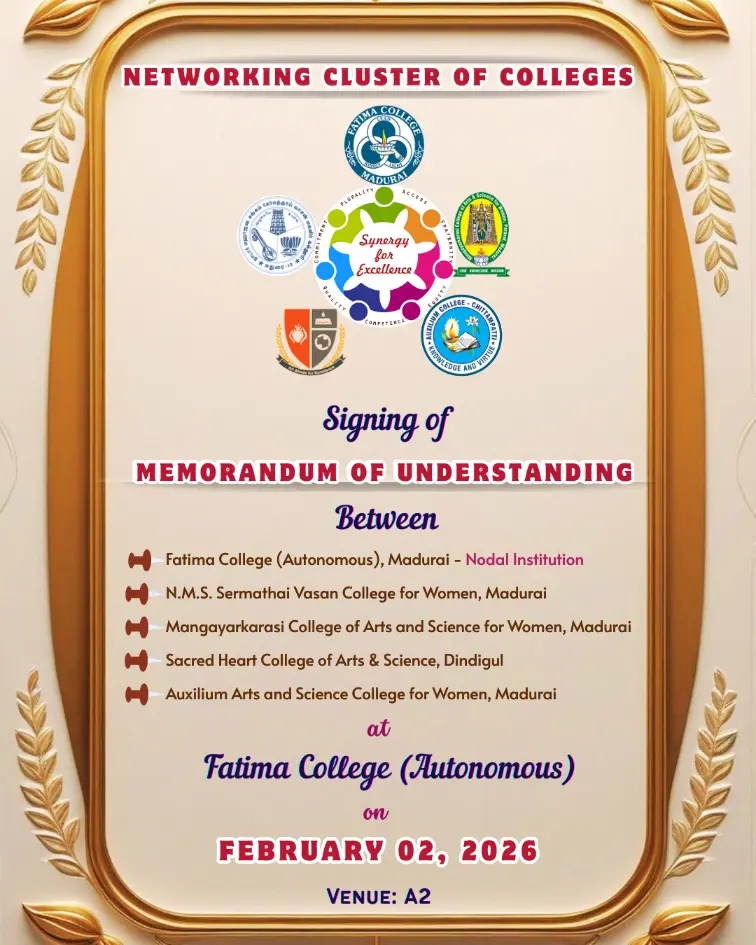 Fatima College proudly announces the sanctioning of two TIDCO (Tamil Nadu Industrial Development Corporation) Projects – an Institute–Industry initiative under the University Research Park – on Dec. 06, 2025.. |