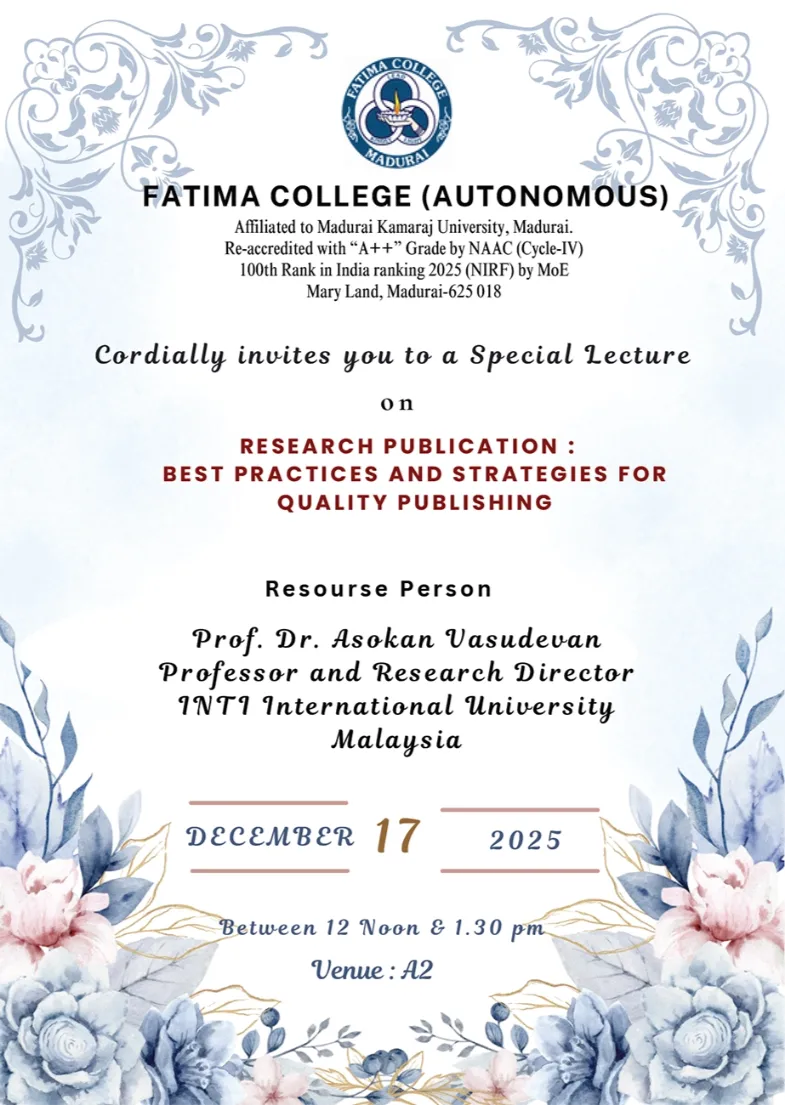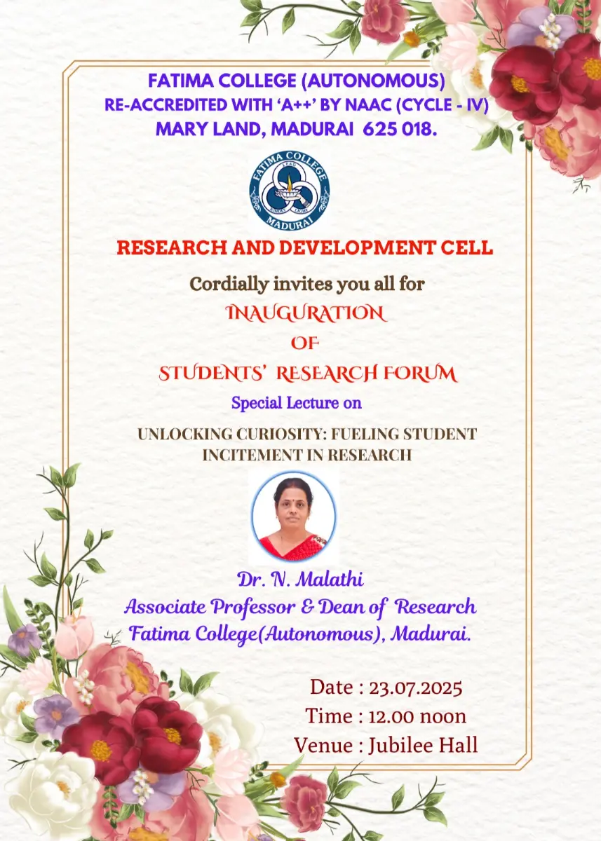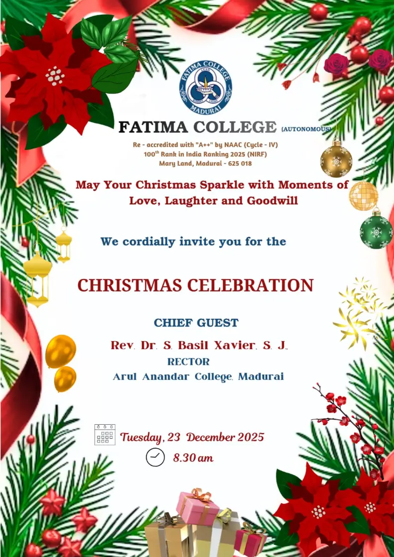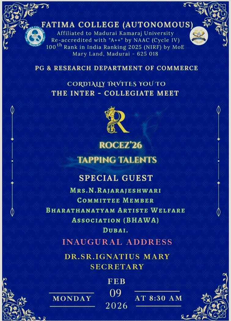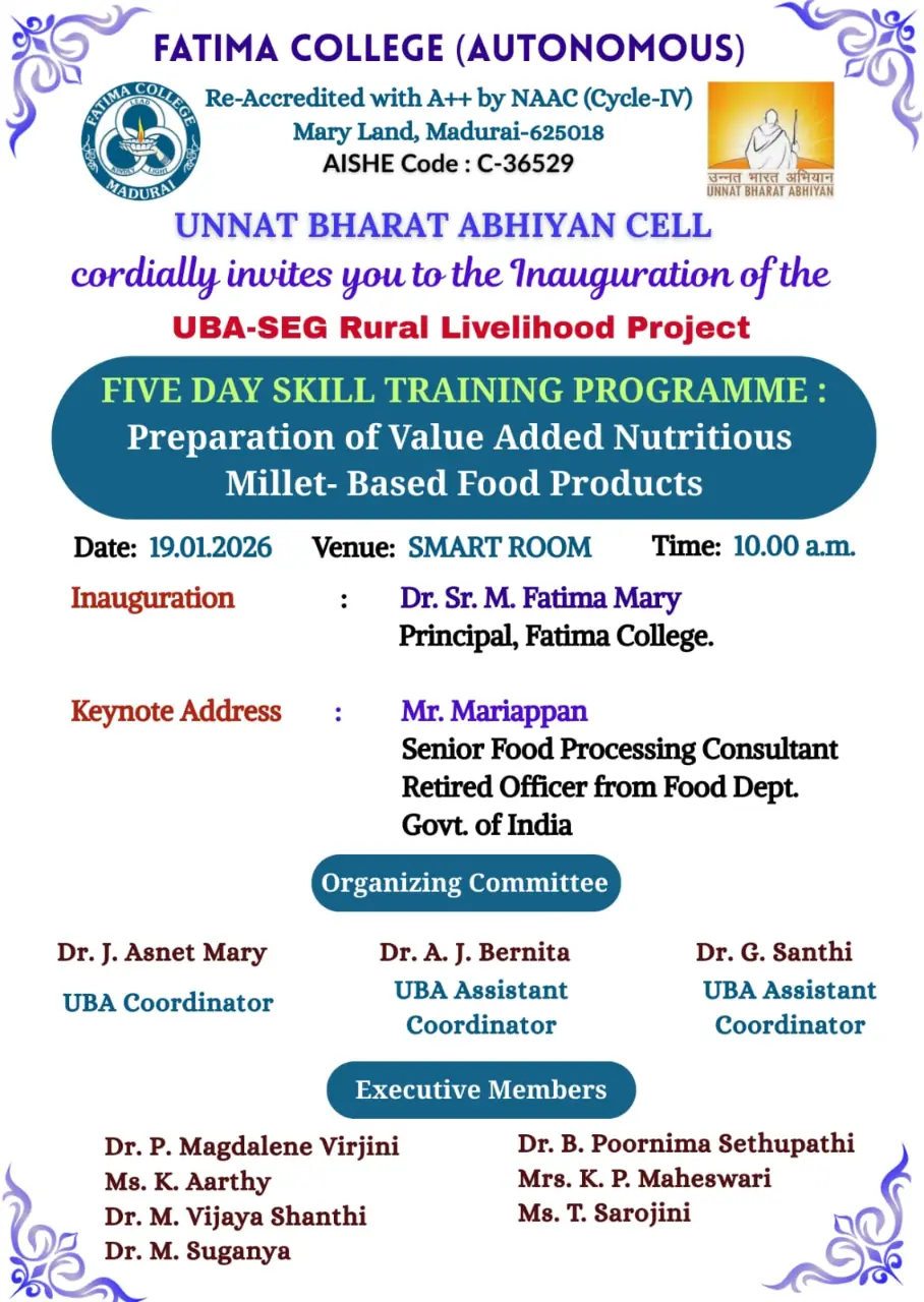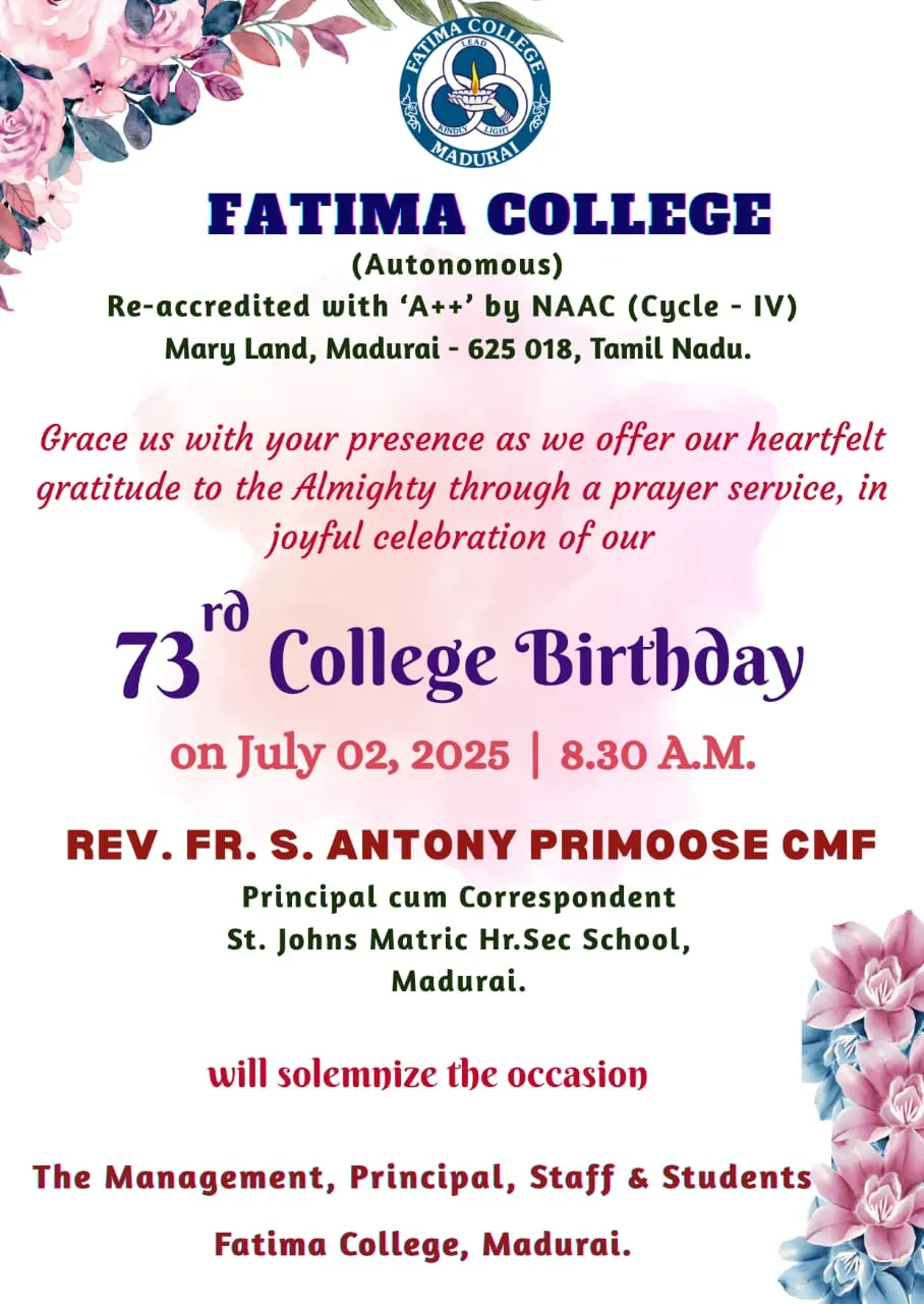 Fatima College proudly announces the sanctioning of two TIDCO (Tamil Nadu Industrial Development Corporation) Projects – an Institute–Industry initiative under the University Research Park – on Dec. 06, 2025.. |