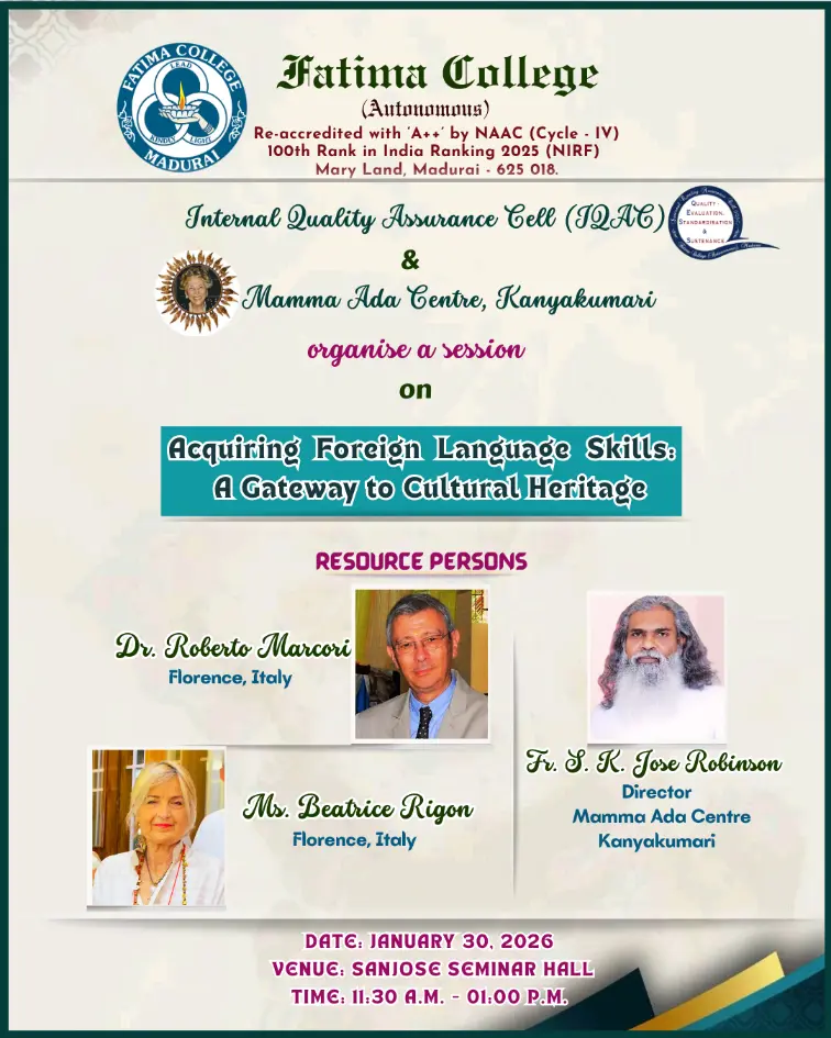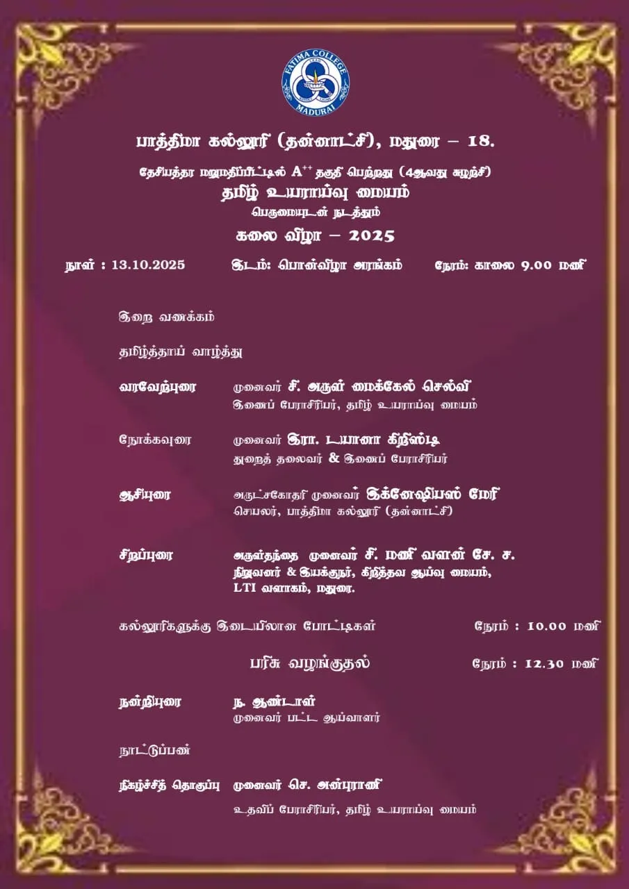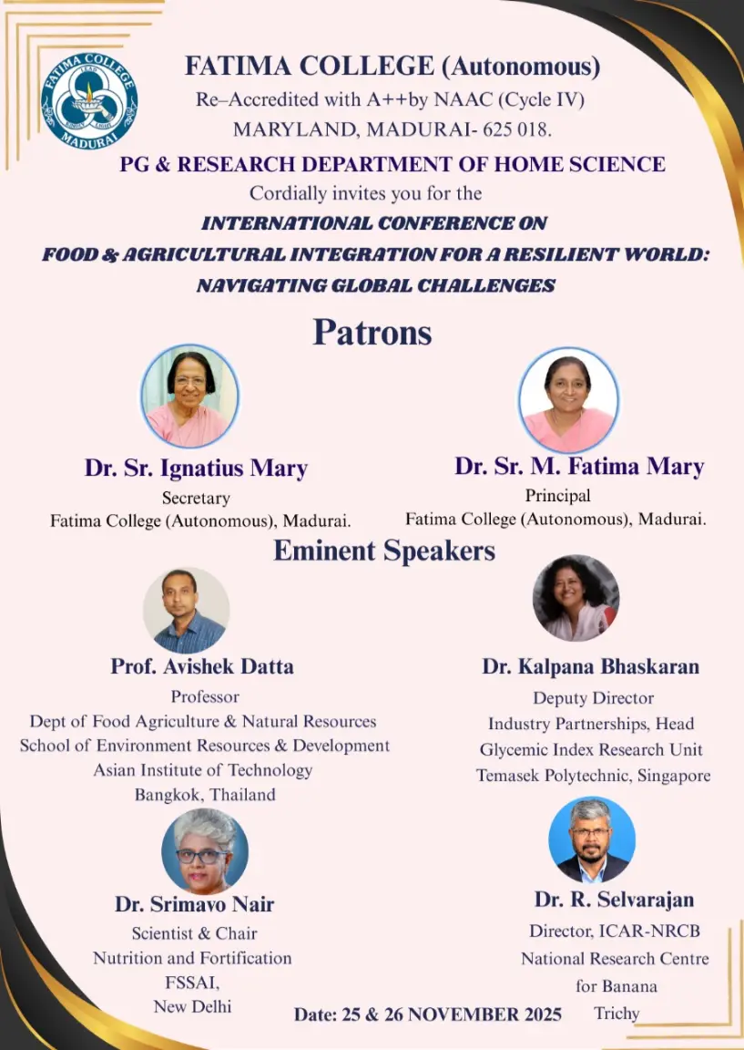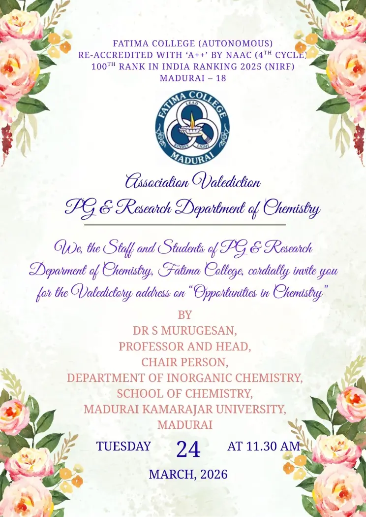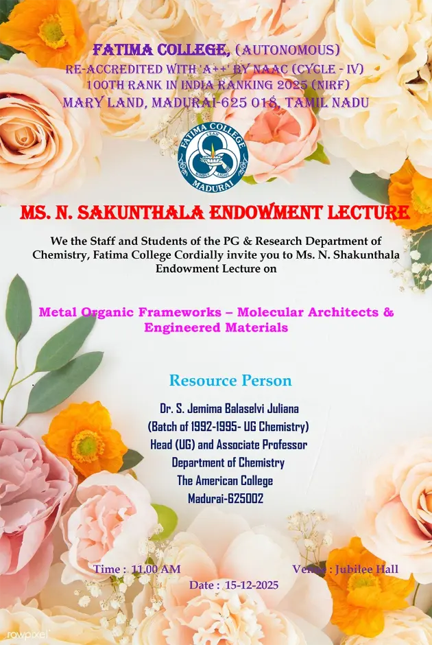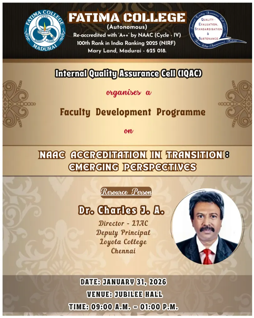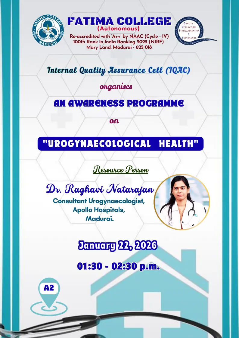 Fatima College proudly announces the sanctioning of two TIDCO (Tamil Nadu Industrial Development Corporation) Projects – an Institute–Industry initiative under the University Research Park – on Dec. 06, 2025.. |