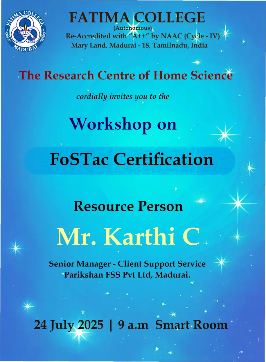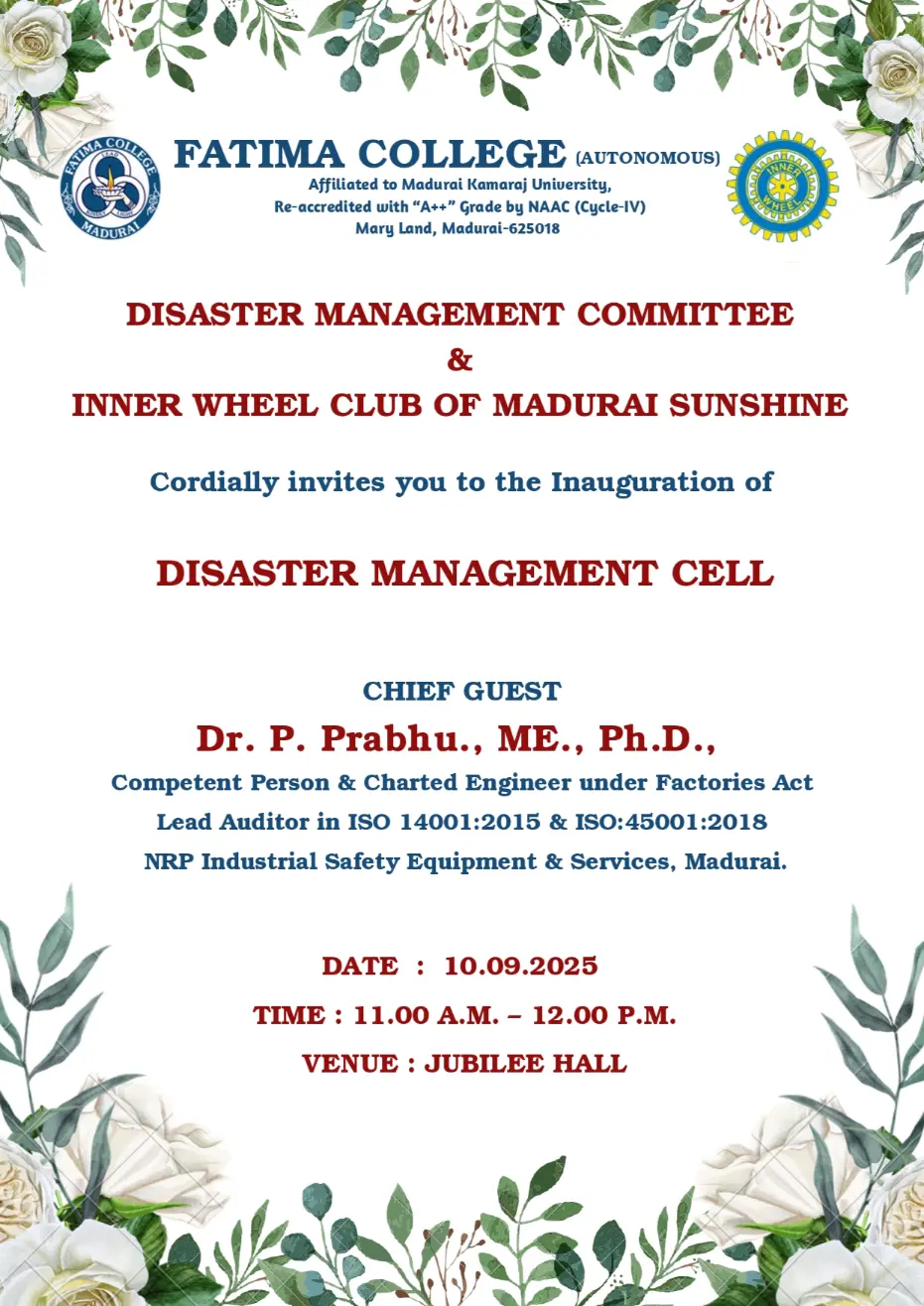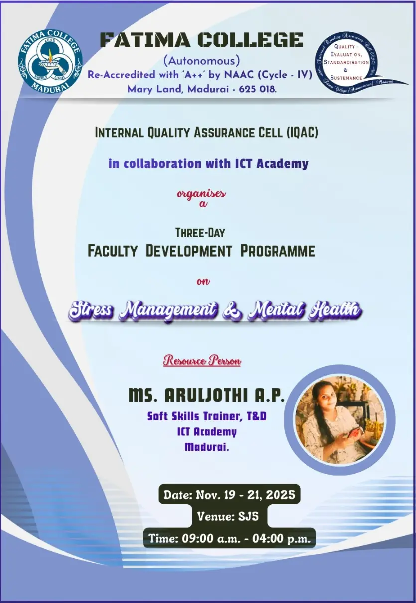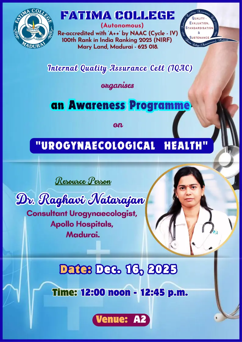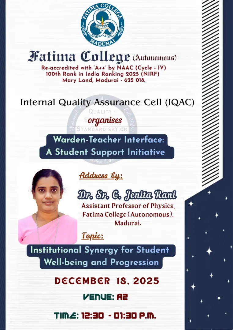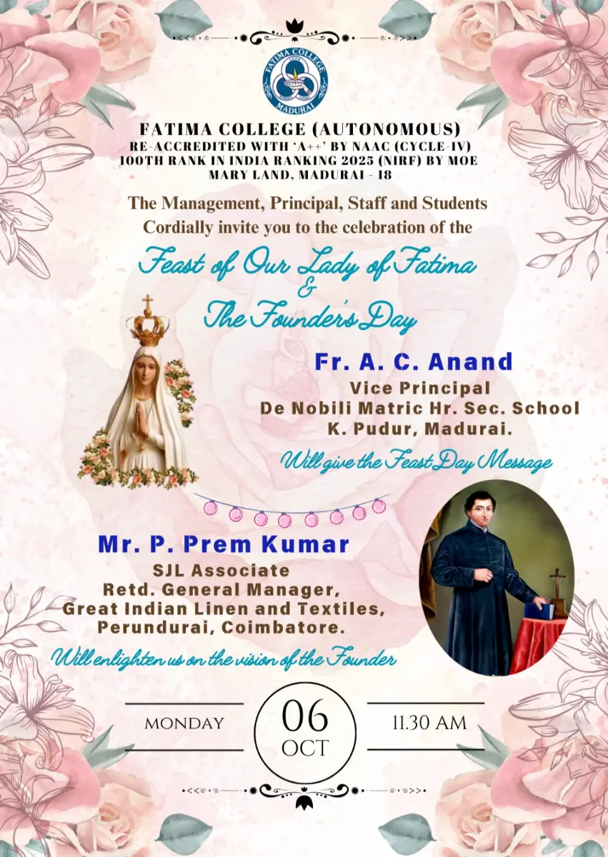 Fatima College proudly announces the sanctioning of two TIDCO (Tamil Nadu Industrial Development Corporation) Projects – an Institute–Industry initiative under the University Research Park – on Dec. 06, 2025.. |