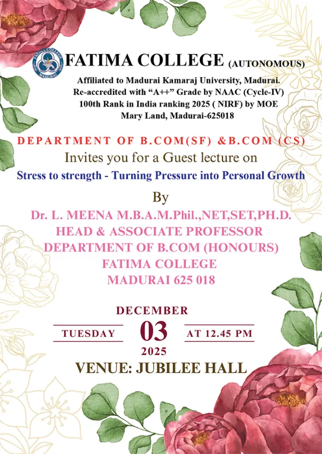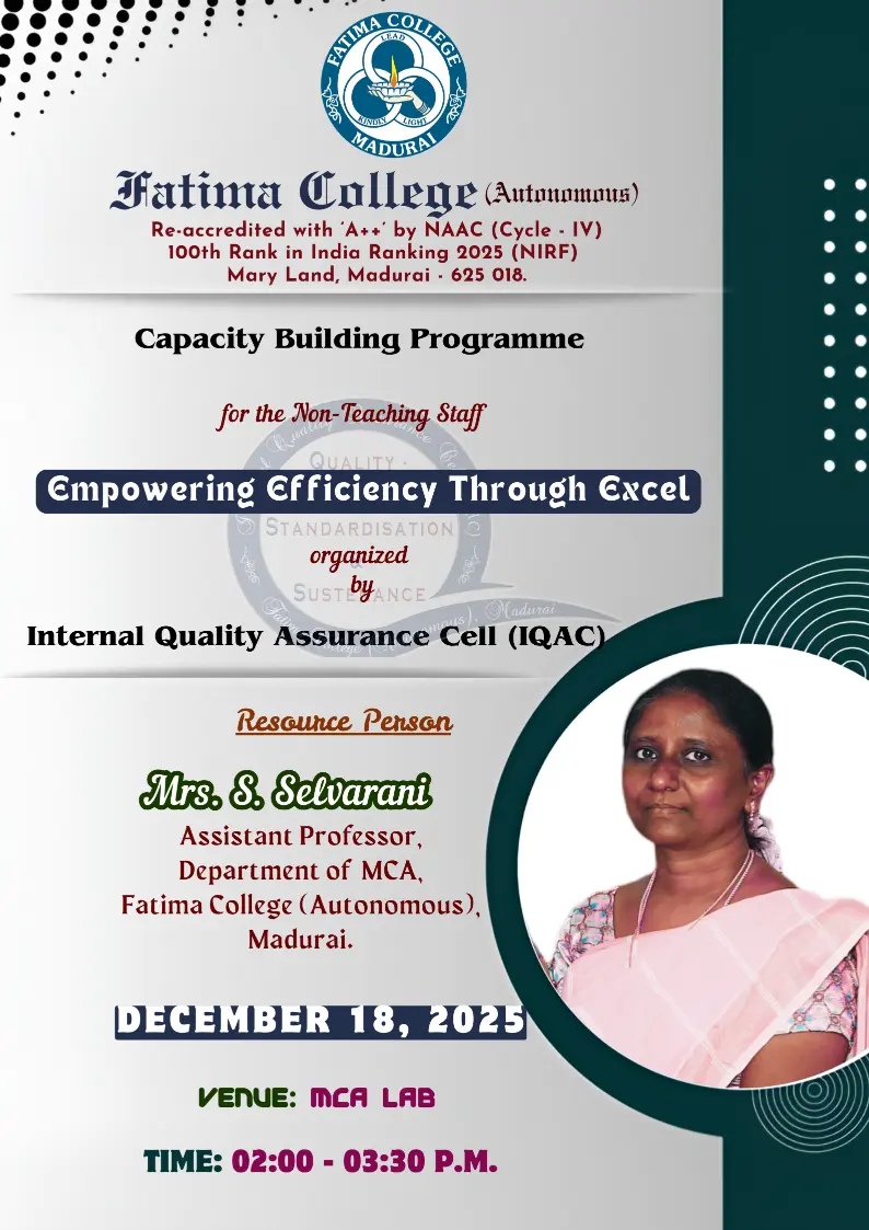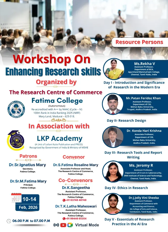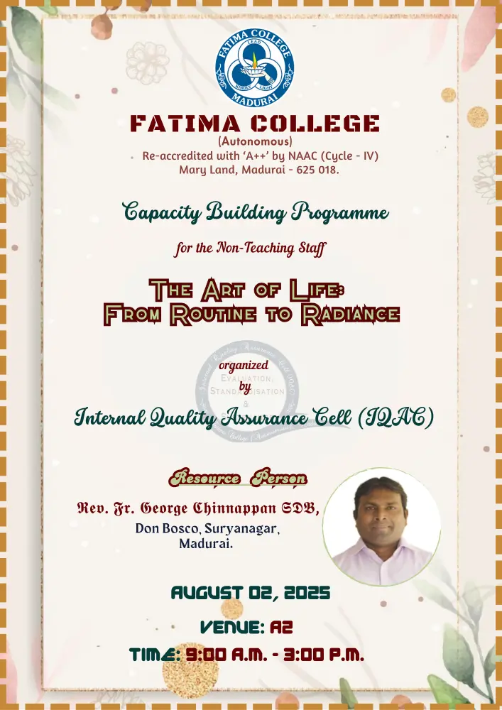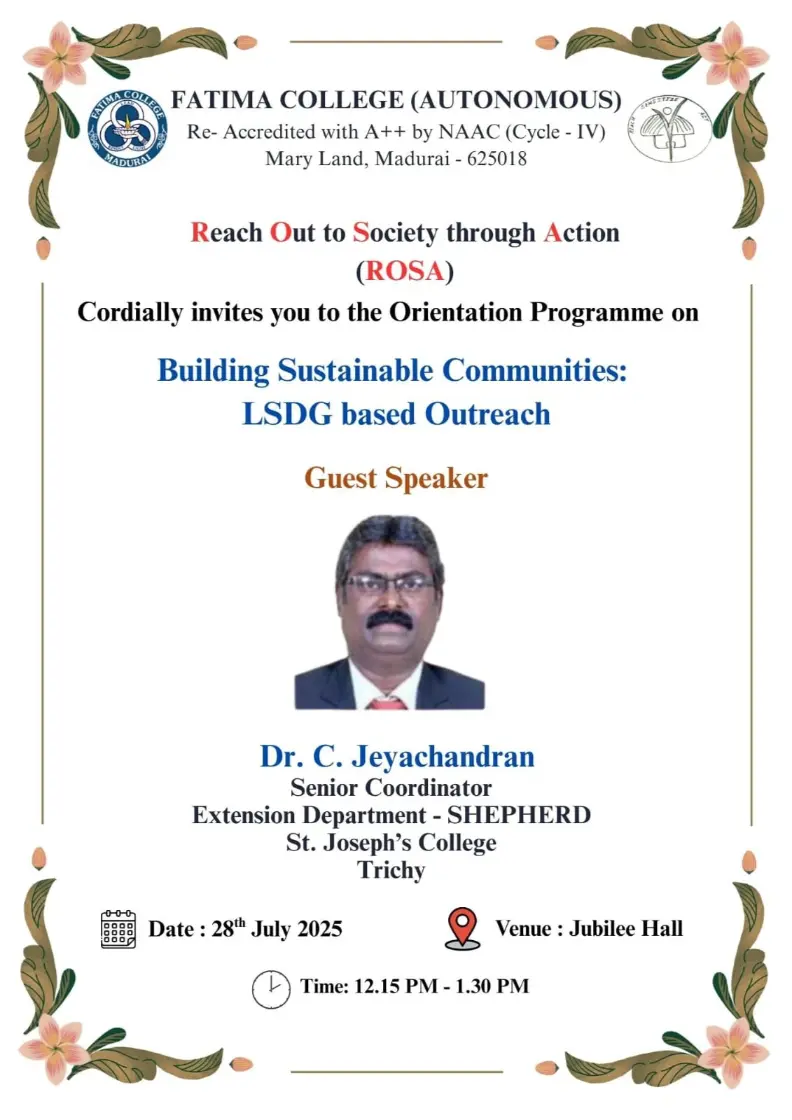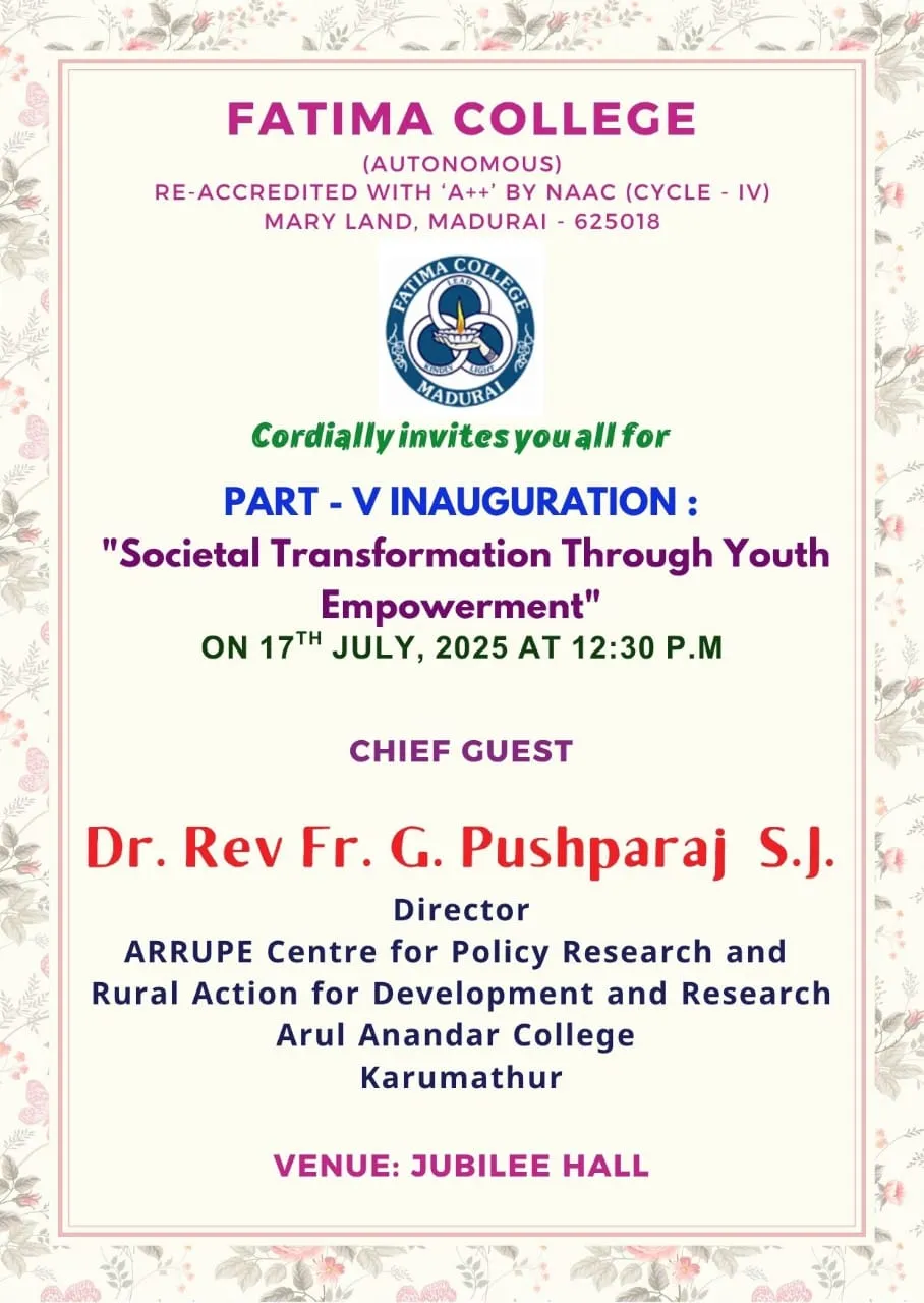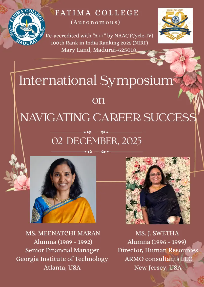 Fatima College proudly announces the sanctioning of two TIDCO (Tamil Nadu Industrial Development Corporation) Projects – an Institute–Industry initiative under the University Research Park – on Dec. 06, 2025.. |