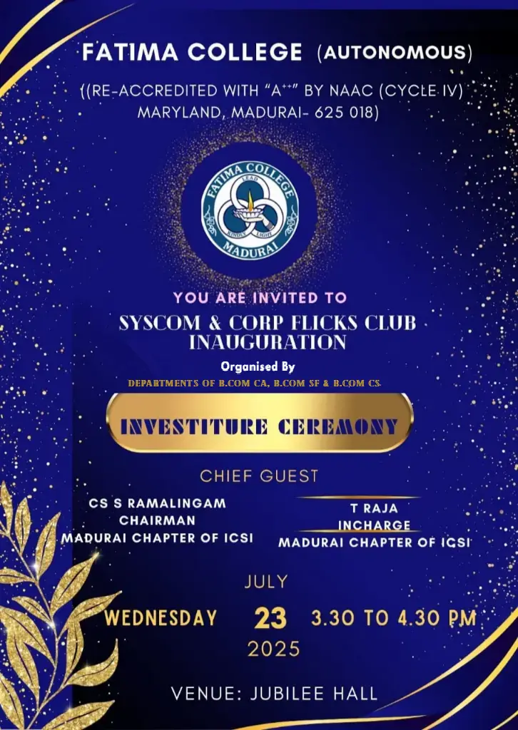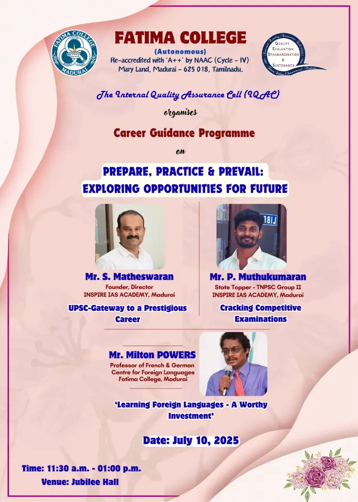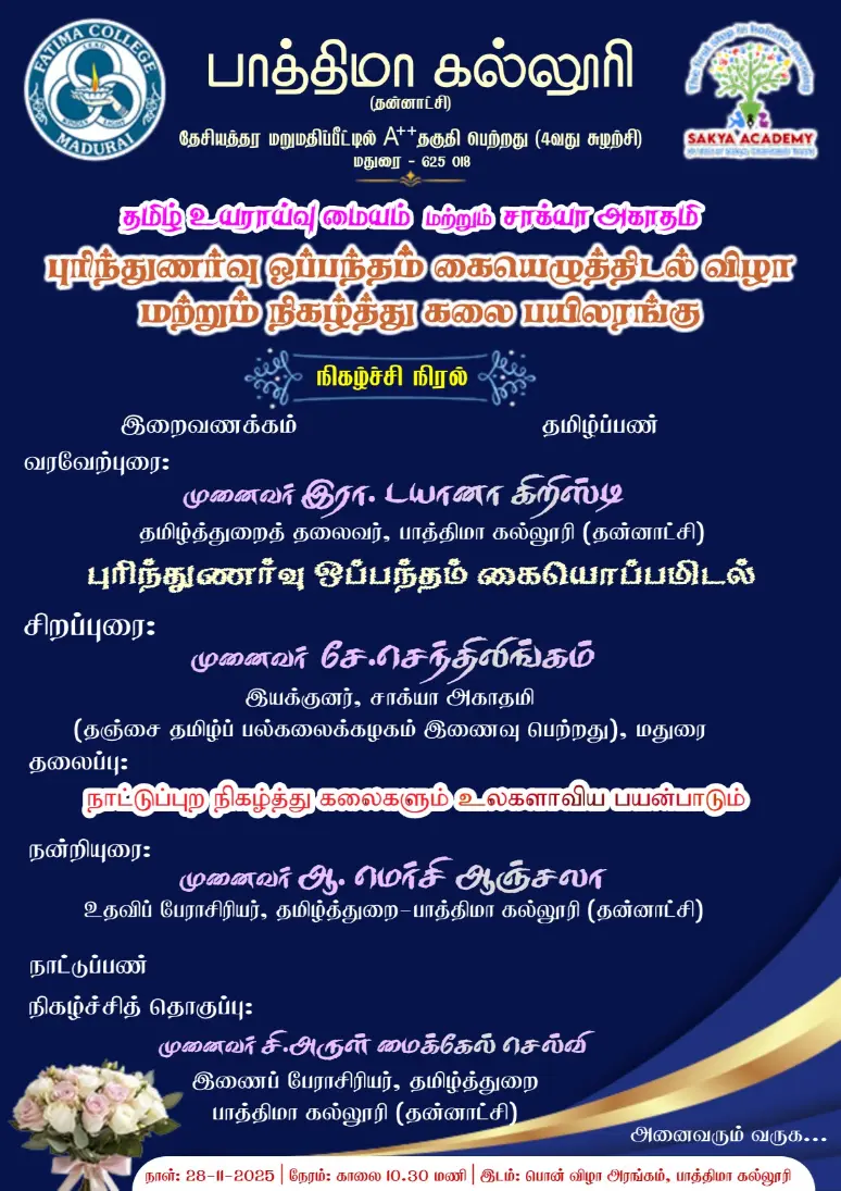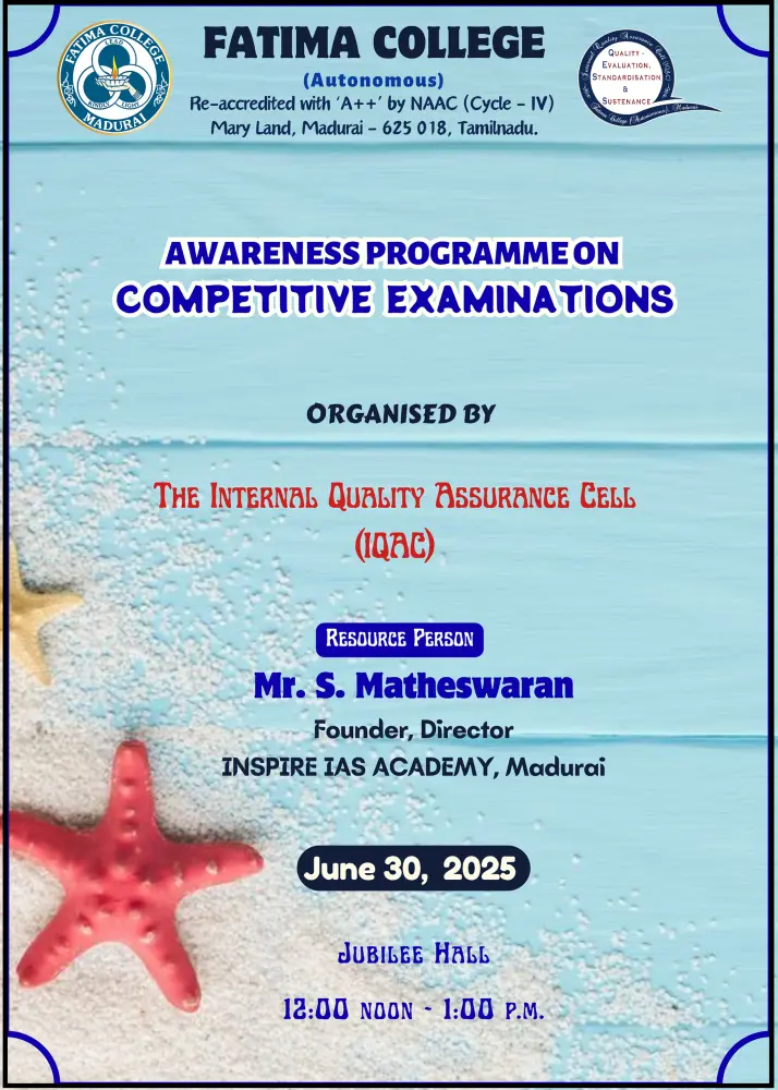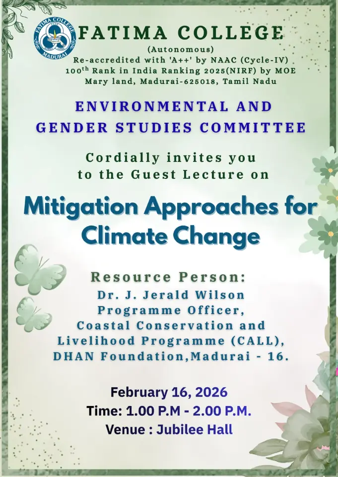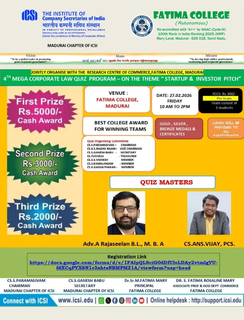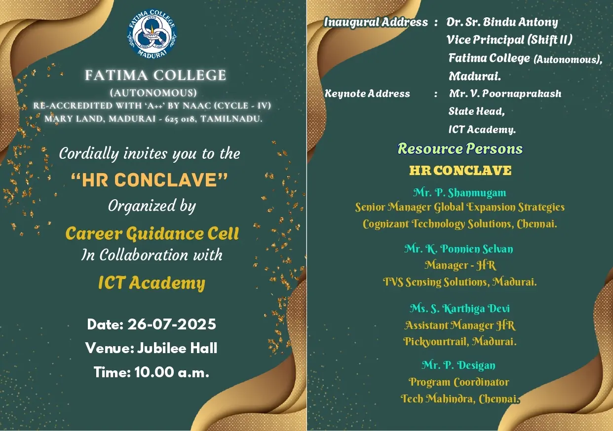 Fatima College proudly announces the sanctioning of two TIDCO (Tamil Nadu Industrial Development Corporation) Projects – an Institute–Industry initiative under the University Research Park – on Dec. 06, 2025.. |