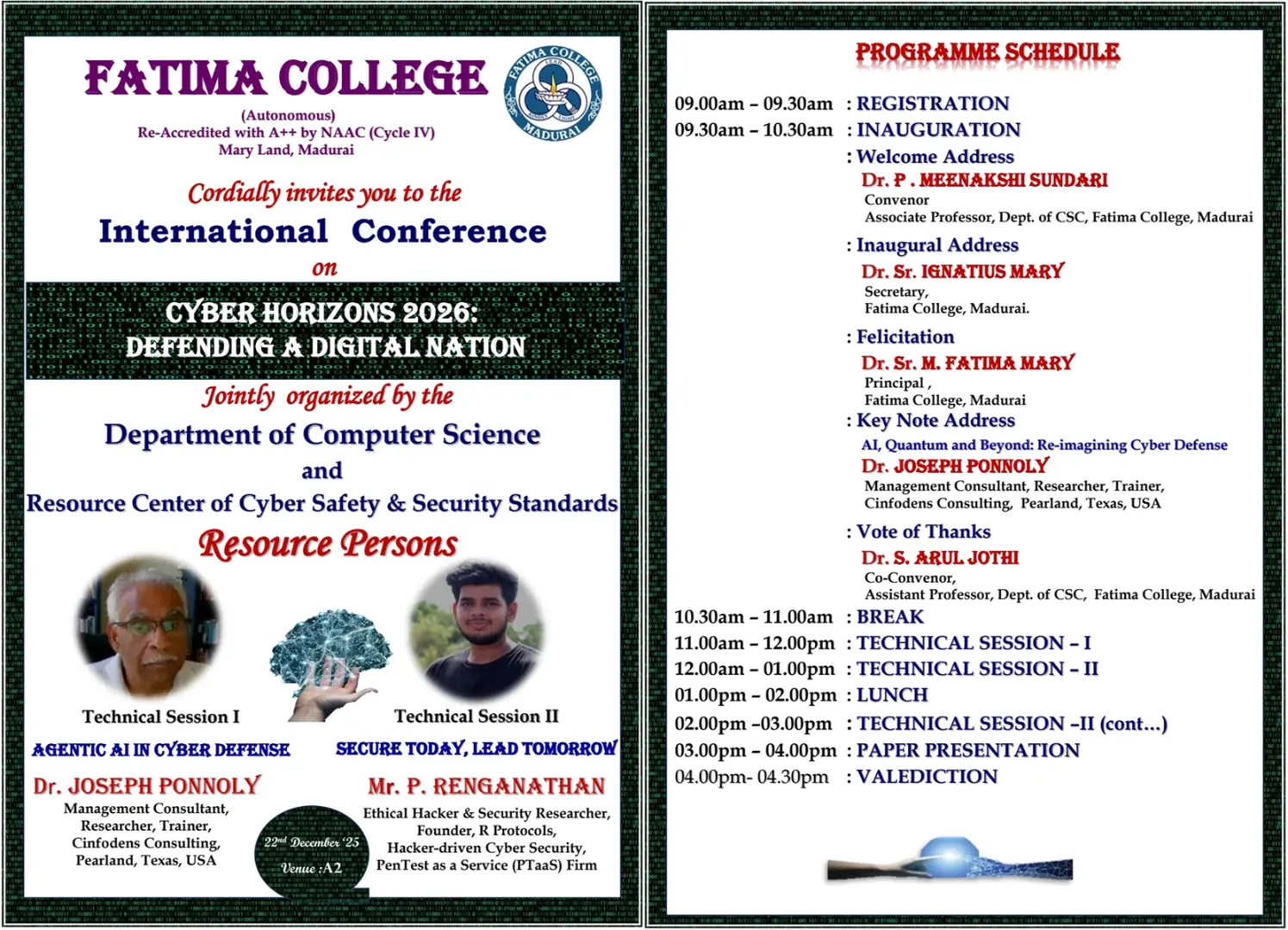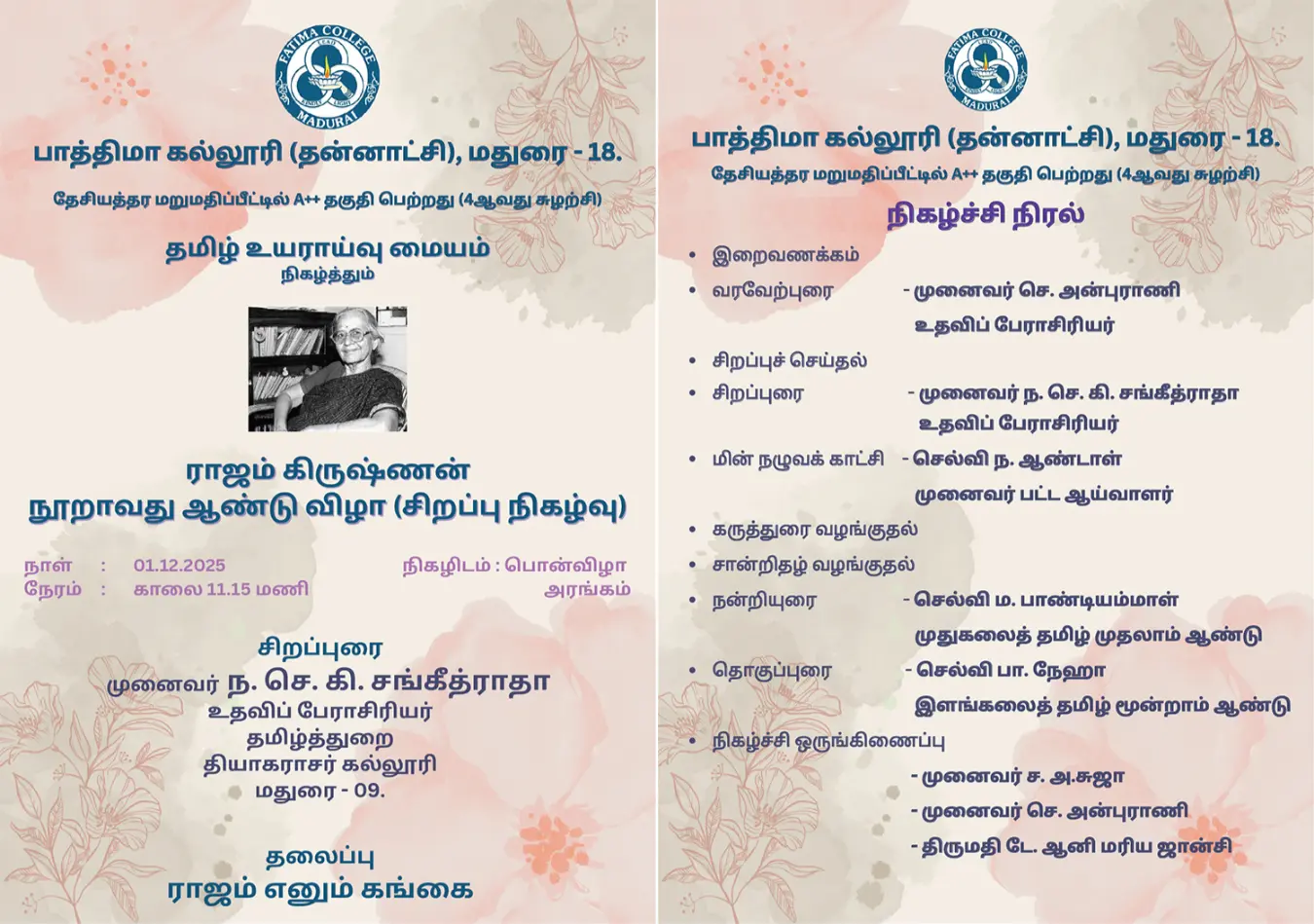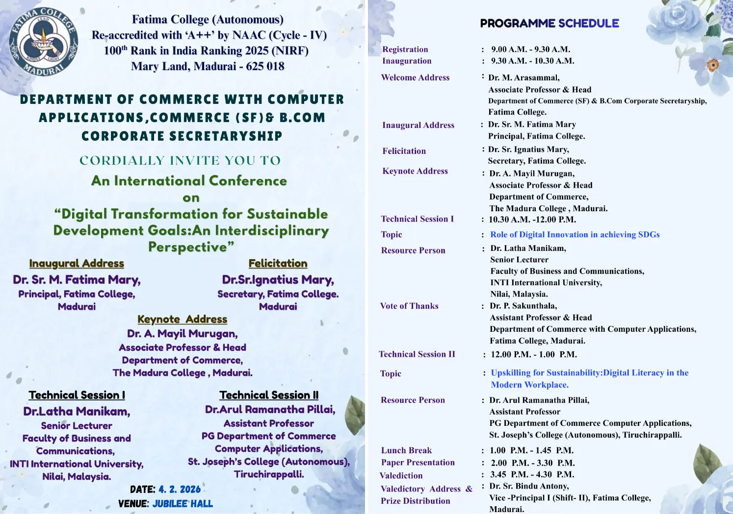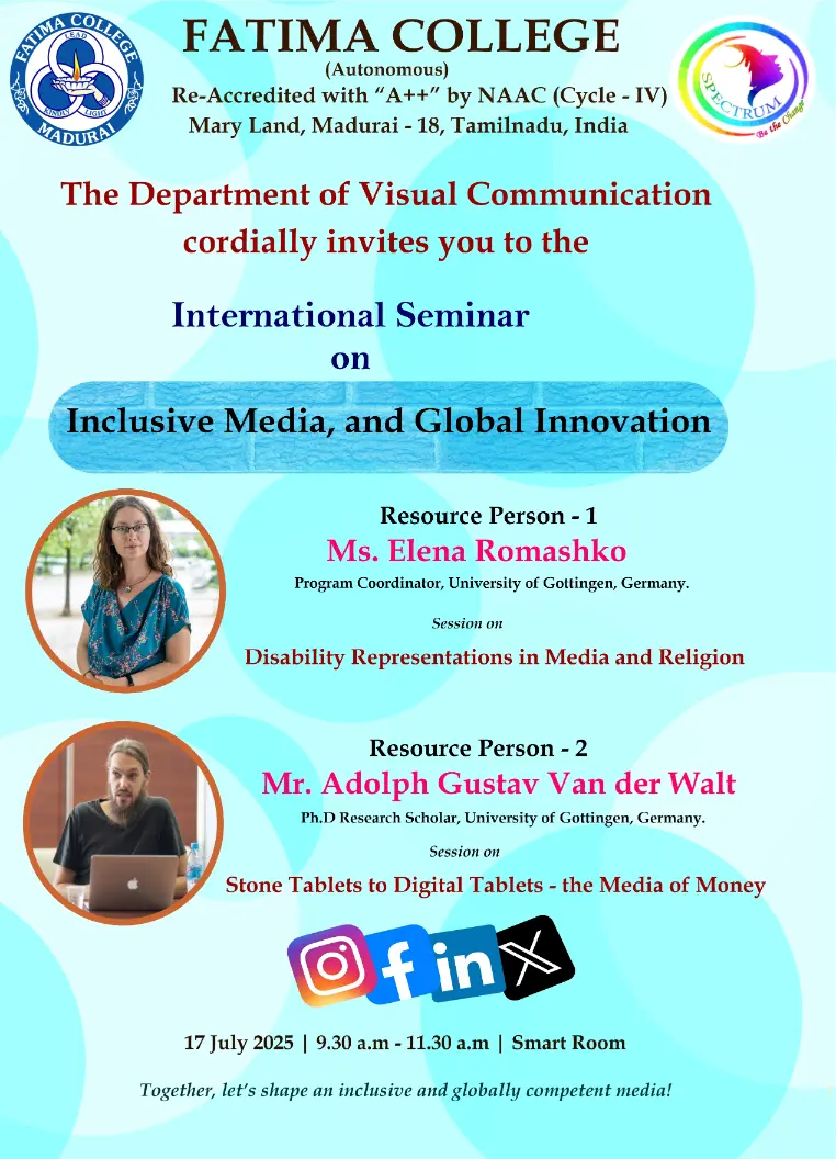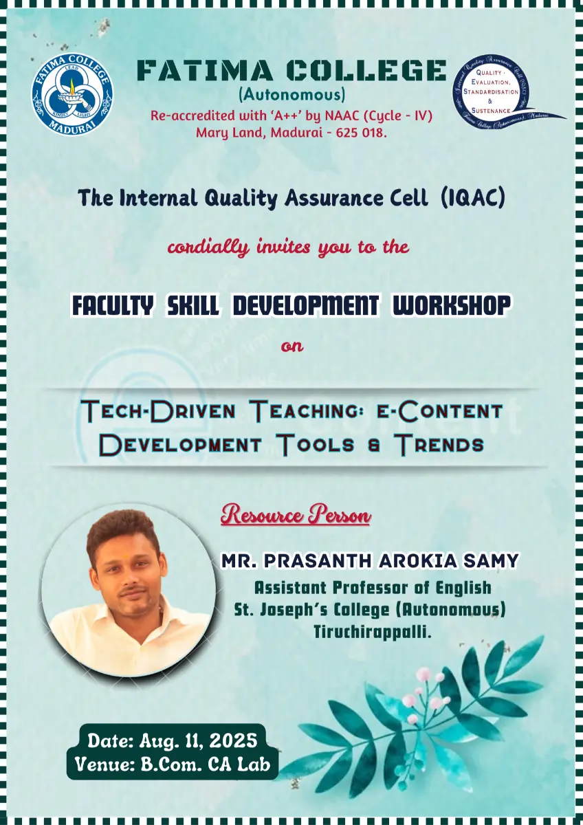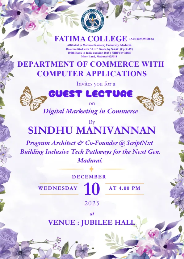 Fatima College proudly announces the sanctioning of two TIDCO (Tamil Nadu Industrial Development Corporation) Projects – an Institute–Industry initiative under the University Research Park – on Dec. 06, 2025.. |
