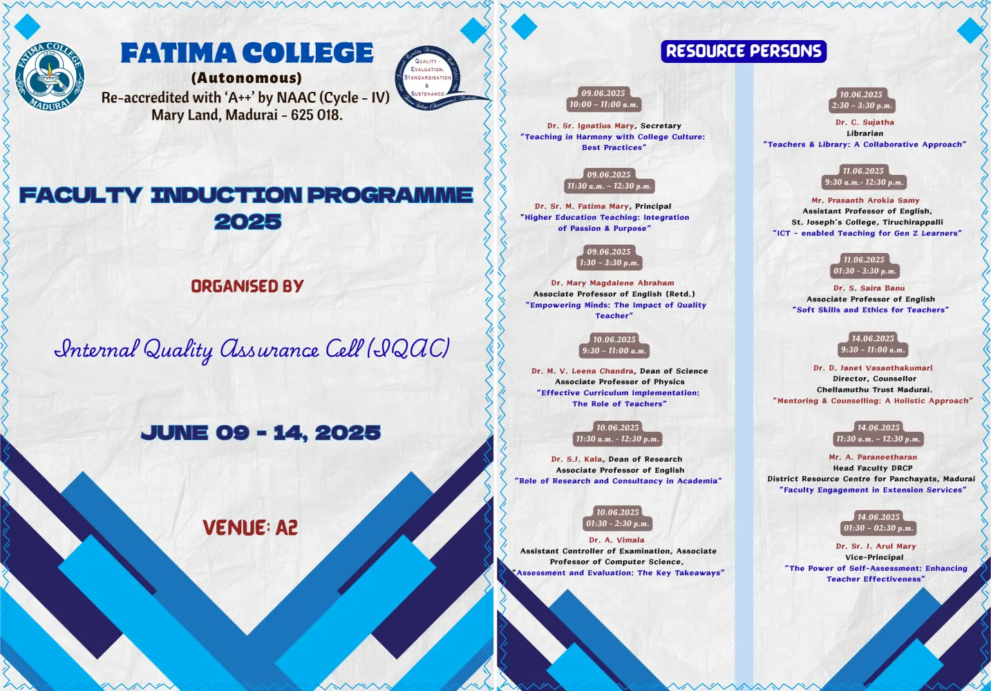 The College begins on June 23, 2025 (Monday) for I UG & I PG students. |