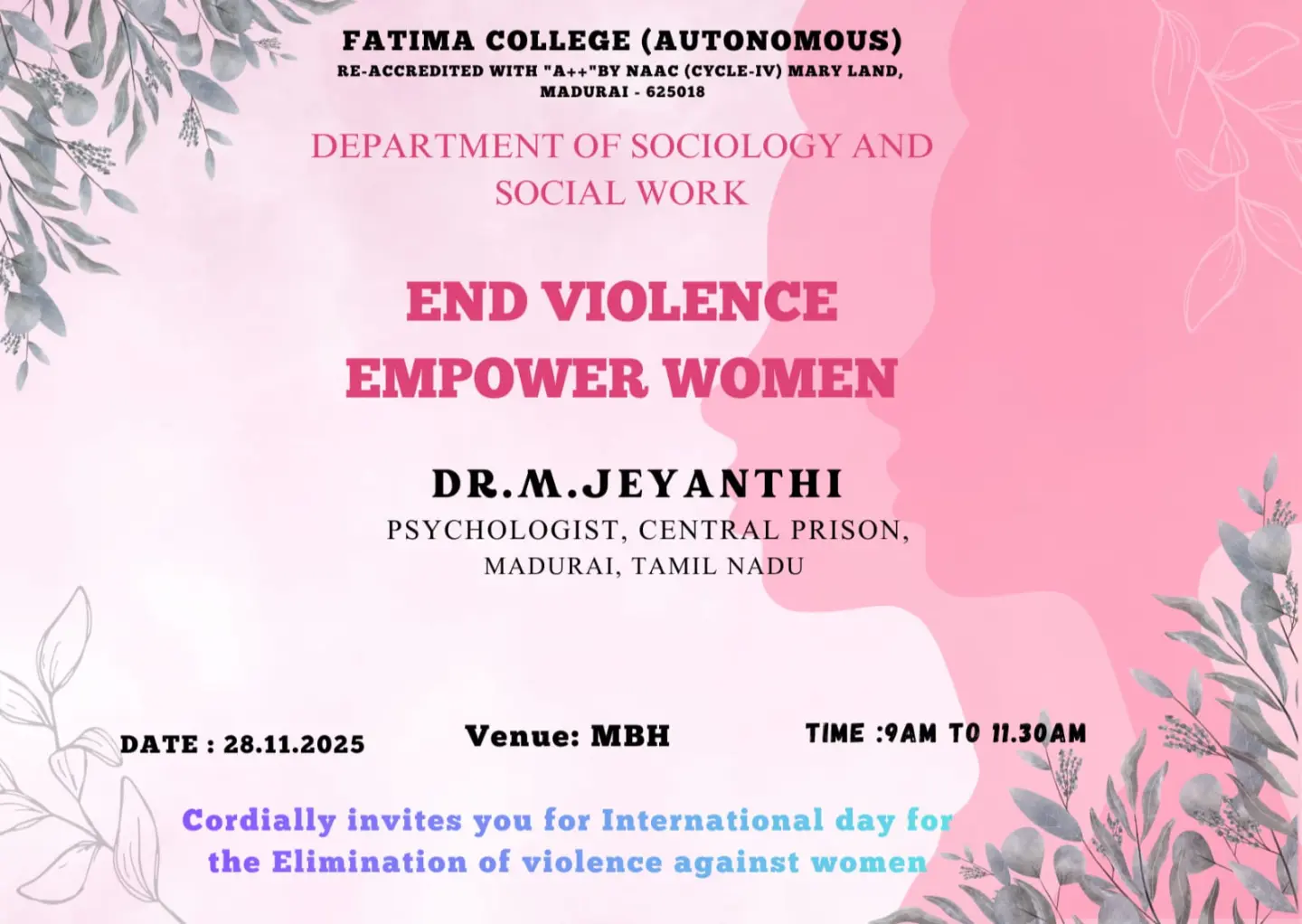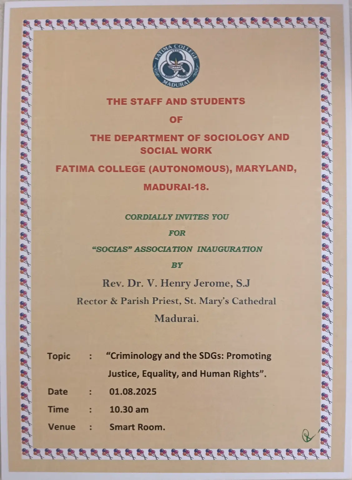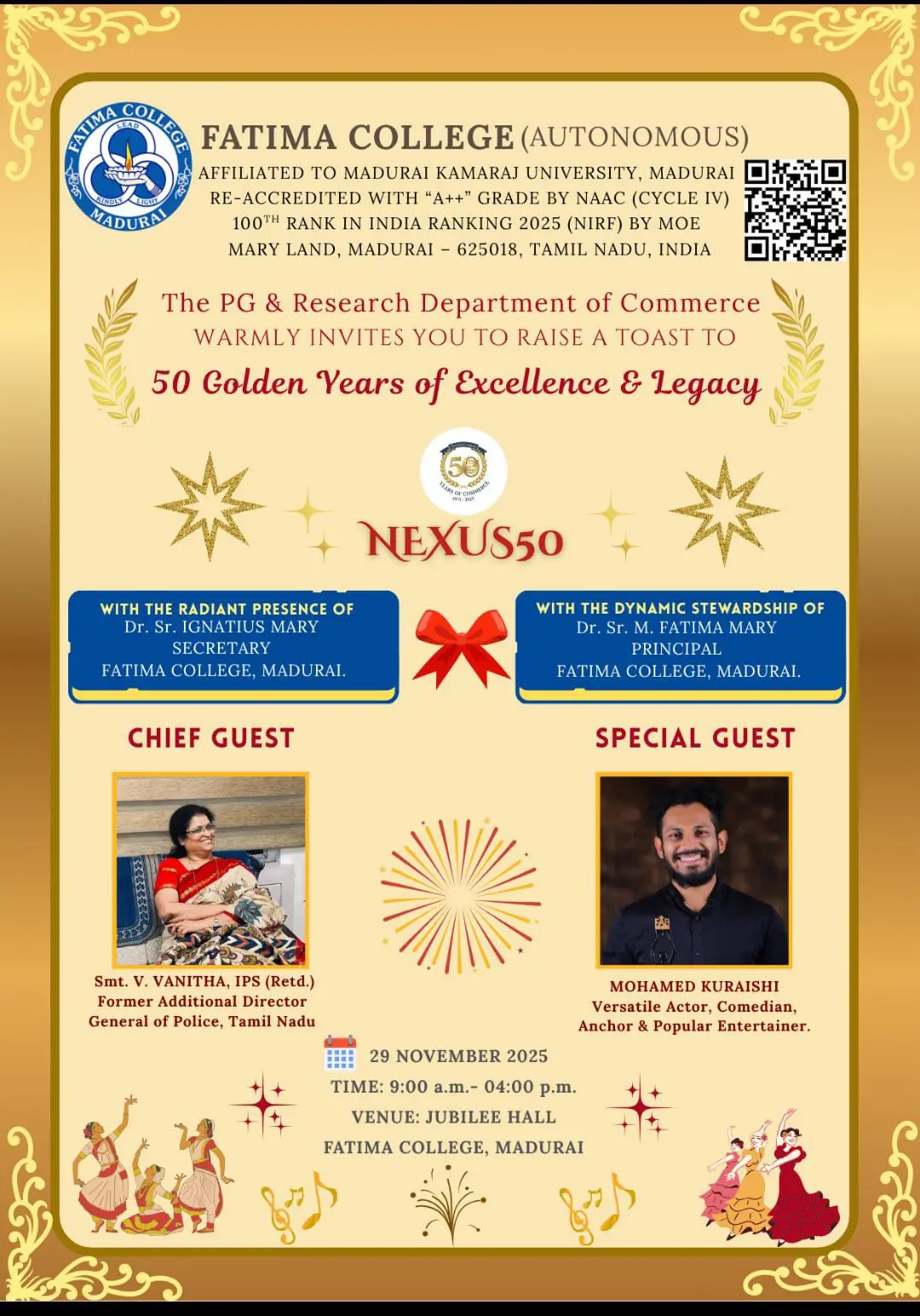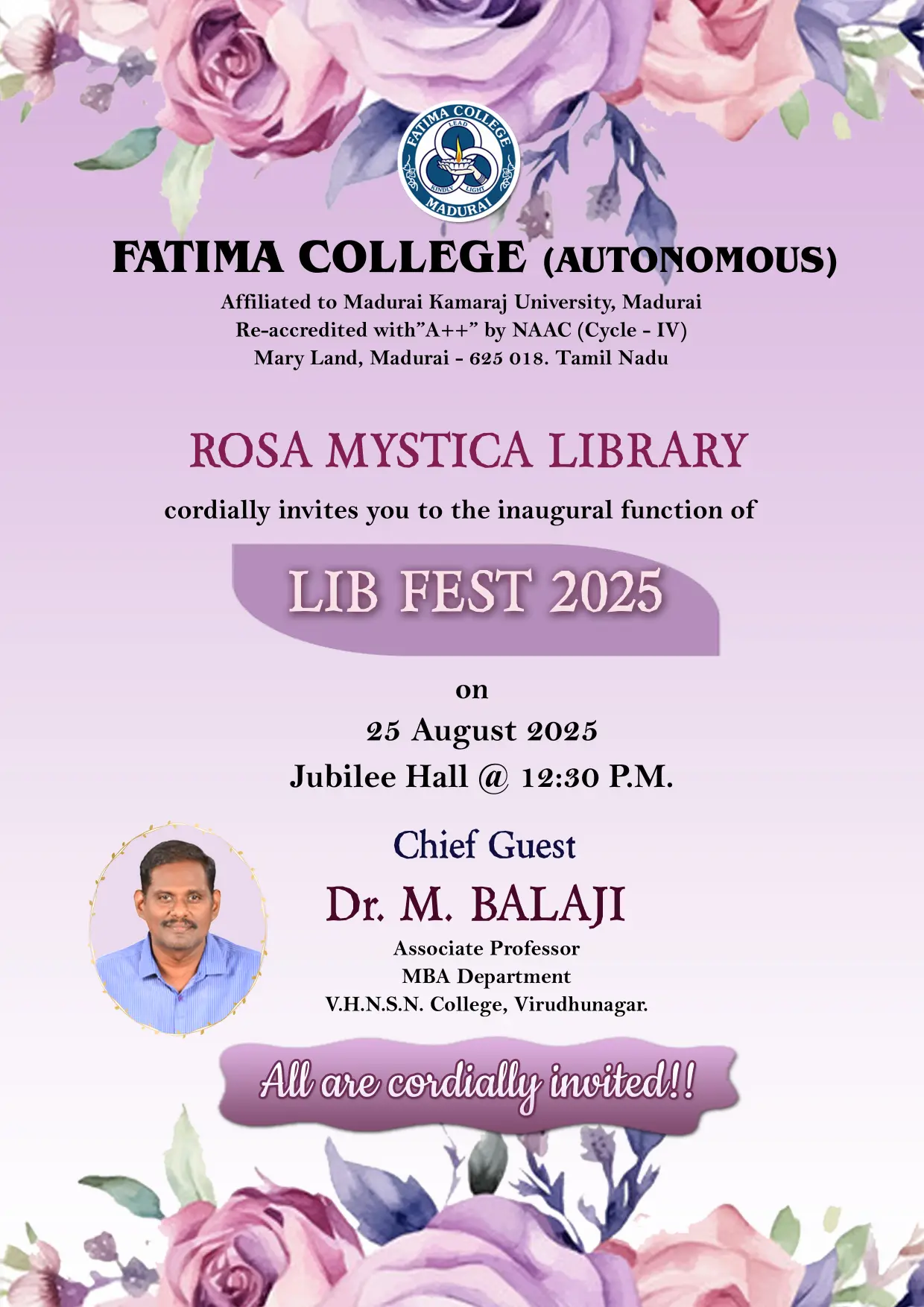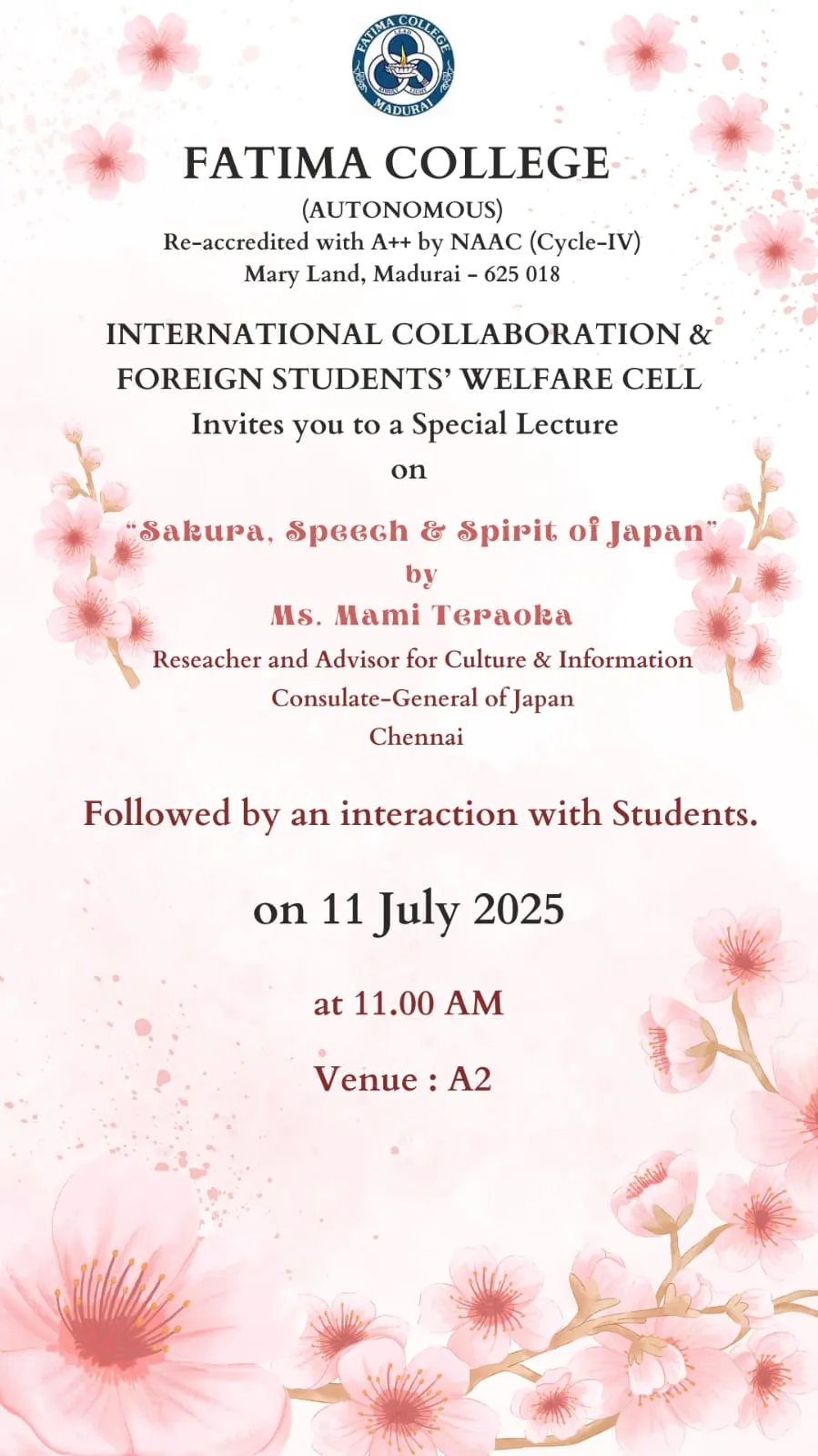 The College reopened for this Academic Year 2025 – 2026 on June 16, 2025 (Monday) for II & III UG and II PG students. |