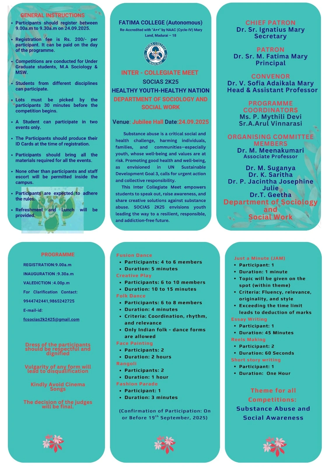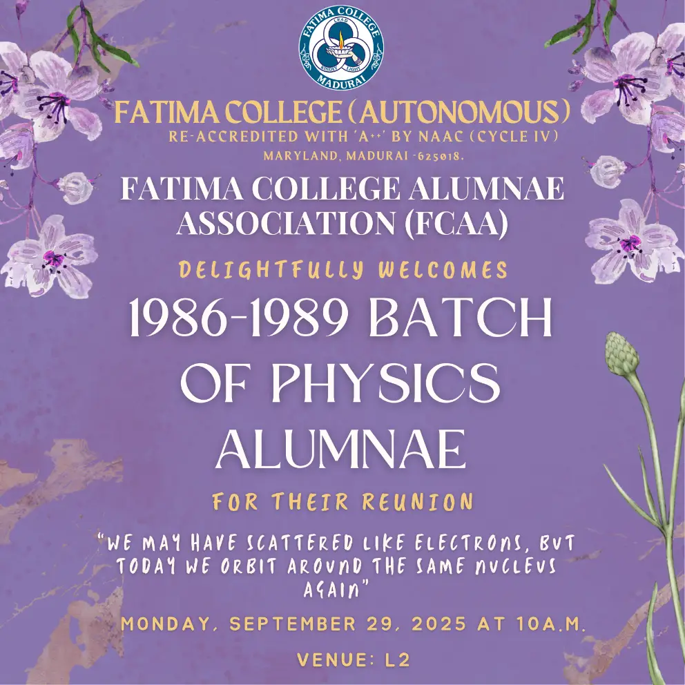 | Invitation: Fatima College Alumnae Association (FCAA) organized an “Annual Alumnae Meet 2023” on June 24, 2023. Click here to Register… |