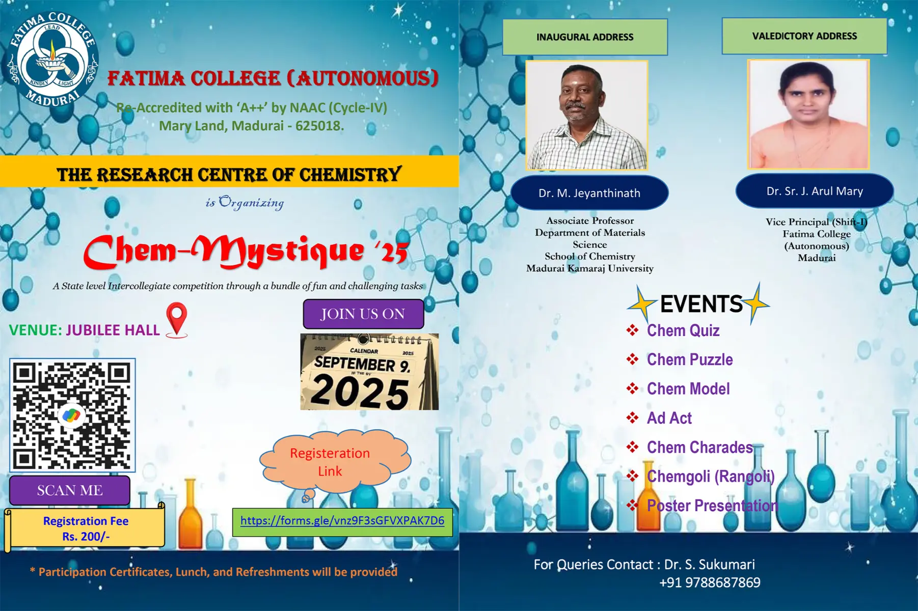 Invitation: Departments of Mathematics (SF) and Statistics jointly organized an Inter-Collegiate Meet and Ramanujan Day Celebration as MathXplore-2K25 on Dec. 17, 2025. Brochure… |